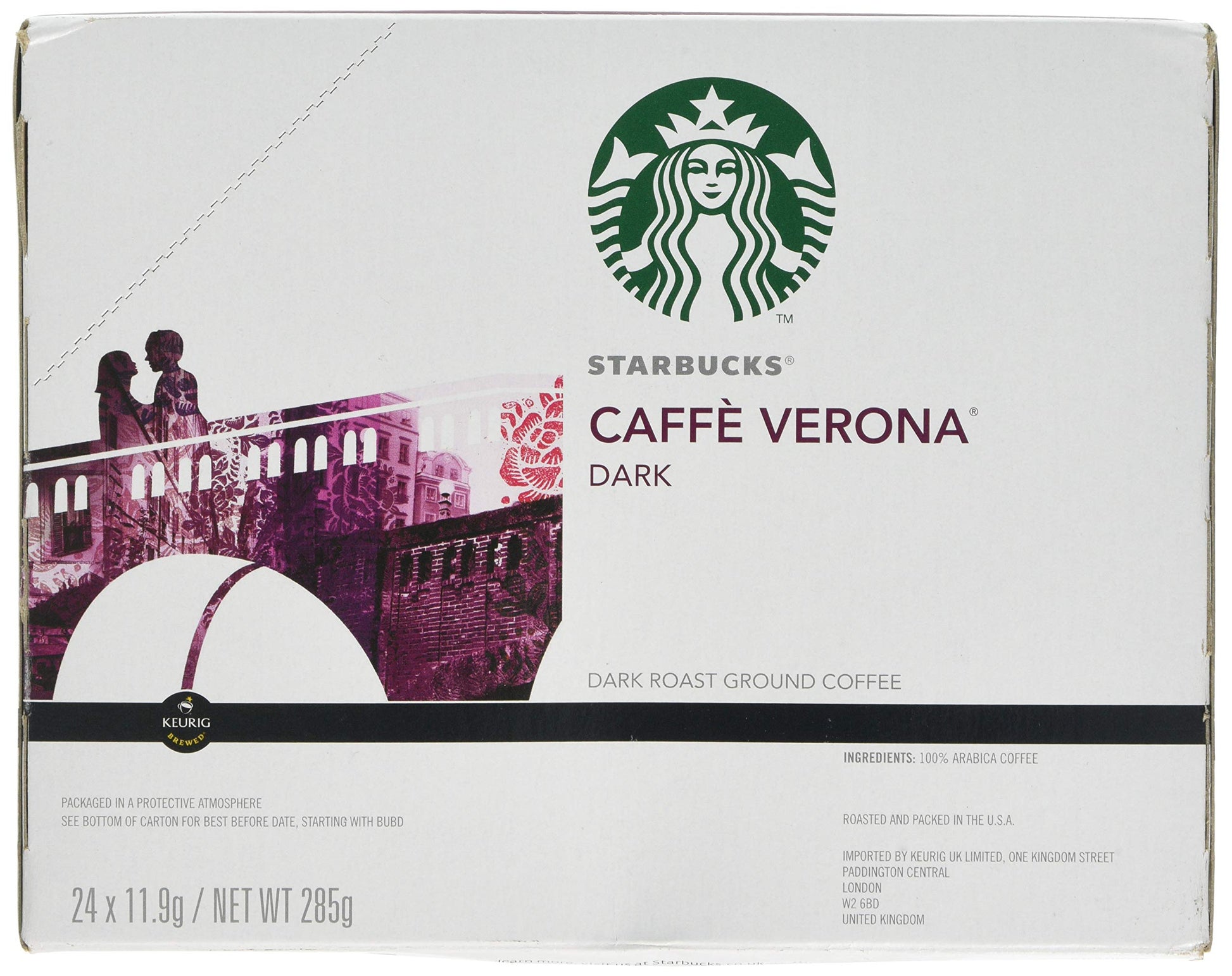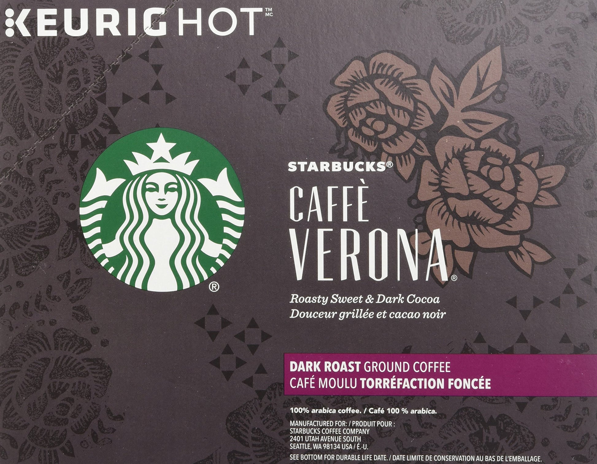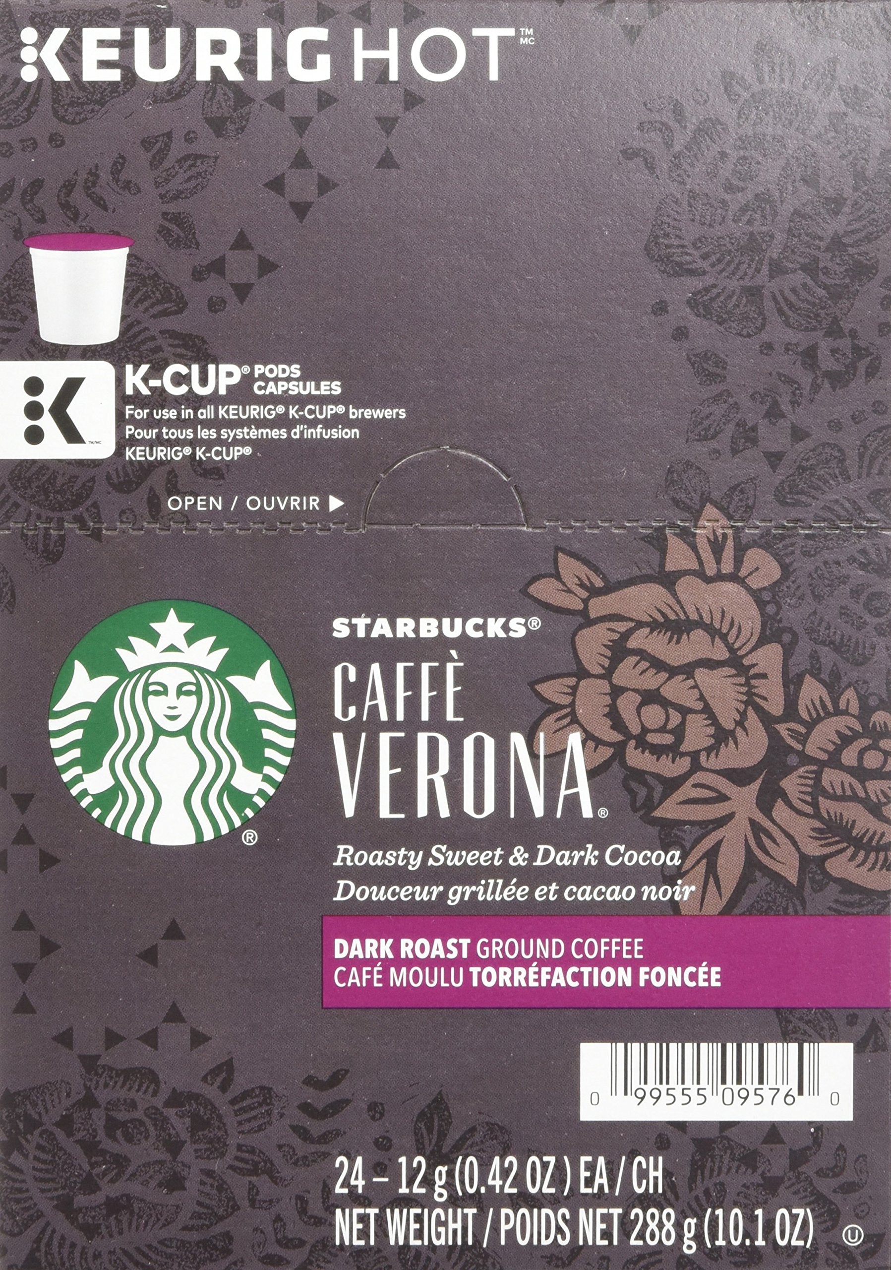 • Q: How many K-Cups are included in a pack of Starbucks Caffe Verona? A: Each pack of Starbucks Caffe Verona contains 24 K-Cups, providing you with a convenient supply of coffee for multiple brewing sessions.