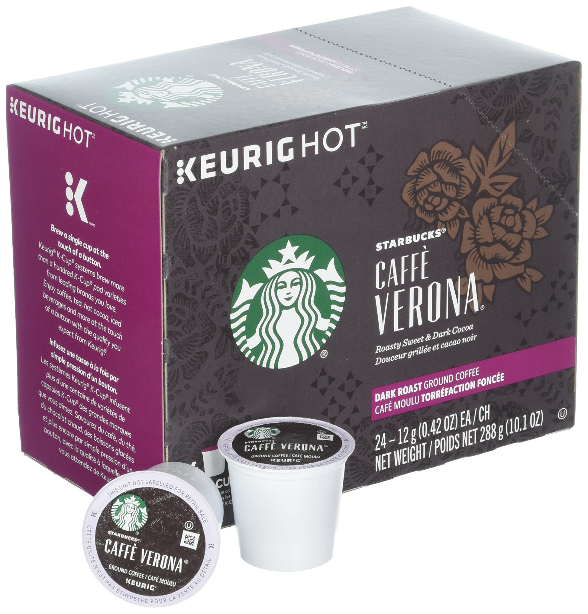 We'Re Updating Our K-Cup Pods To Be Recyclable! Starbucks K-Cup Pods Are Designed For Use With The Keurig Single Cup Brewing System. Created For A Seattle Restaurant In 1975, This Blend Was Loved By Many. So Many, In Fact, That We Began Hand-Scooping And Blending It To Order In Our Stores. The Love Was So Strong That We Finally Made It Official, Calling It Verona After The City That Inspires So Many. Keurig And K-Cup Are Trademarks Of Keurig Green Mountain, Inc., Used With Permission. Enjoy Anytime! Contents: Contains 4 Boxes, Each With 24 K-Cup Pods For A Total Of 96 Pods Of Starbucks Caff Verona Coffee. Enjoy Anytime!Please Note The Packaging Change: Due To A Recent Packaging Change, The Graphical Design Of The K-Cup Lids May Vary Slightly From Image. The Product Ingredients, Roast, Amount Of Grinds, Etc. Have Not Changed