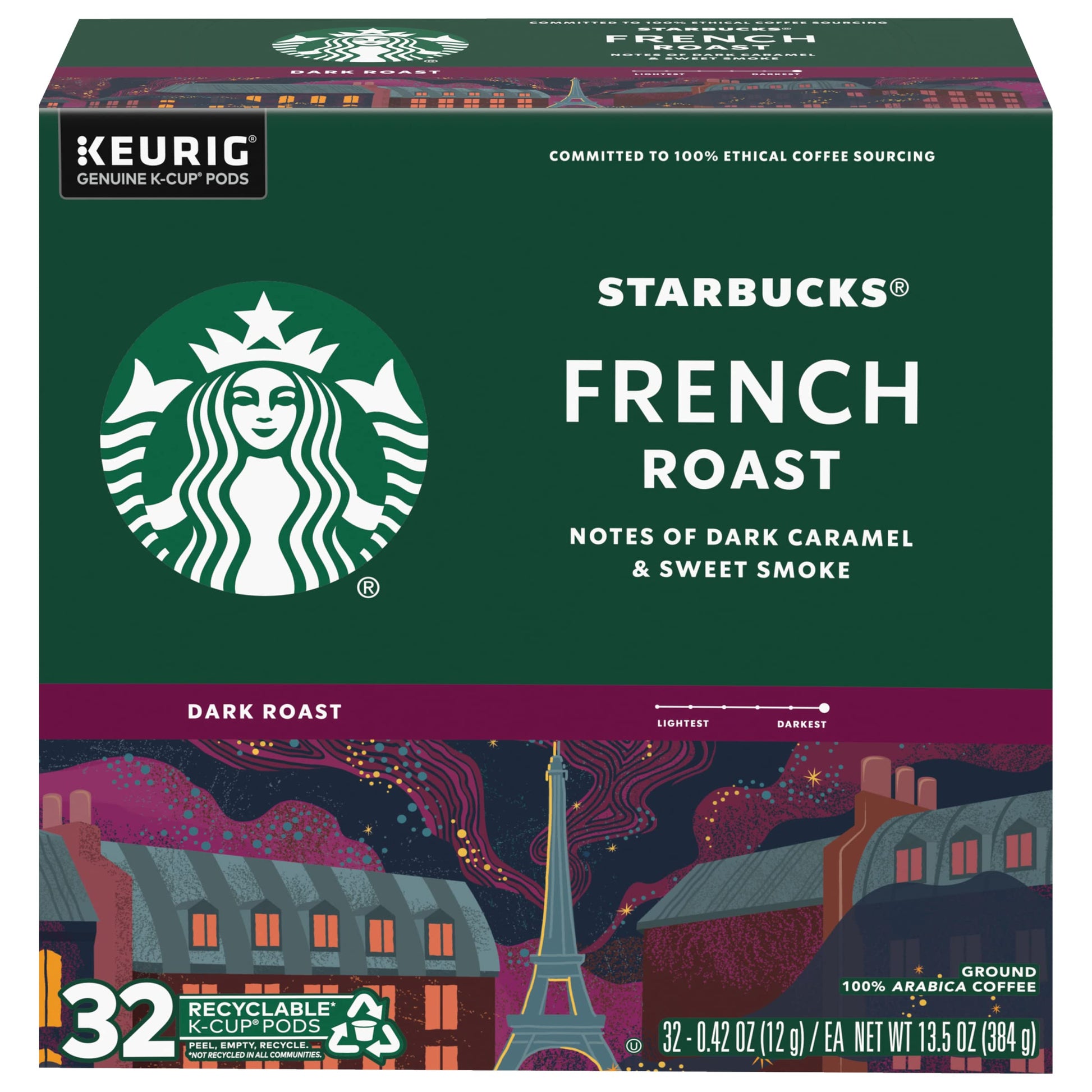 Q: What is the roast level of Starbucks French Roast K-Cup Pods?A: Starbucks French Roast K-Cup Pods feature a dark roast level, making them one of the boldest options available. This roast level is known for its intense flavor profile with notes of dark caramel and sweet smoke.