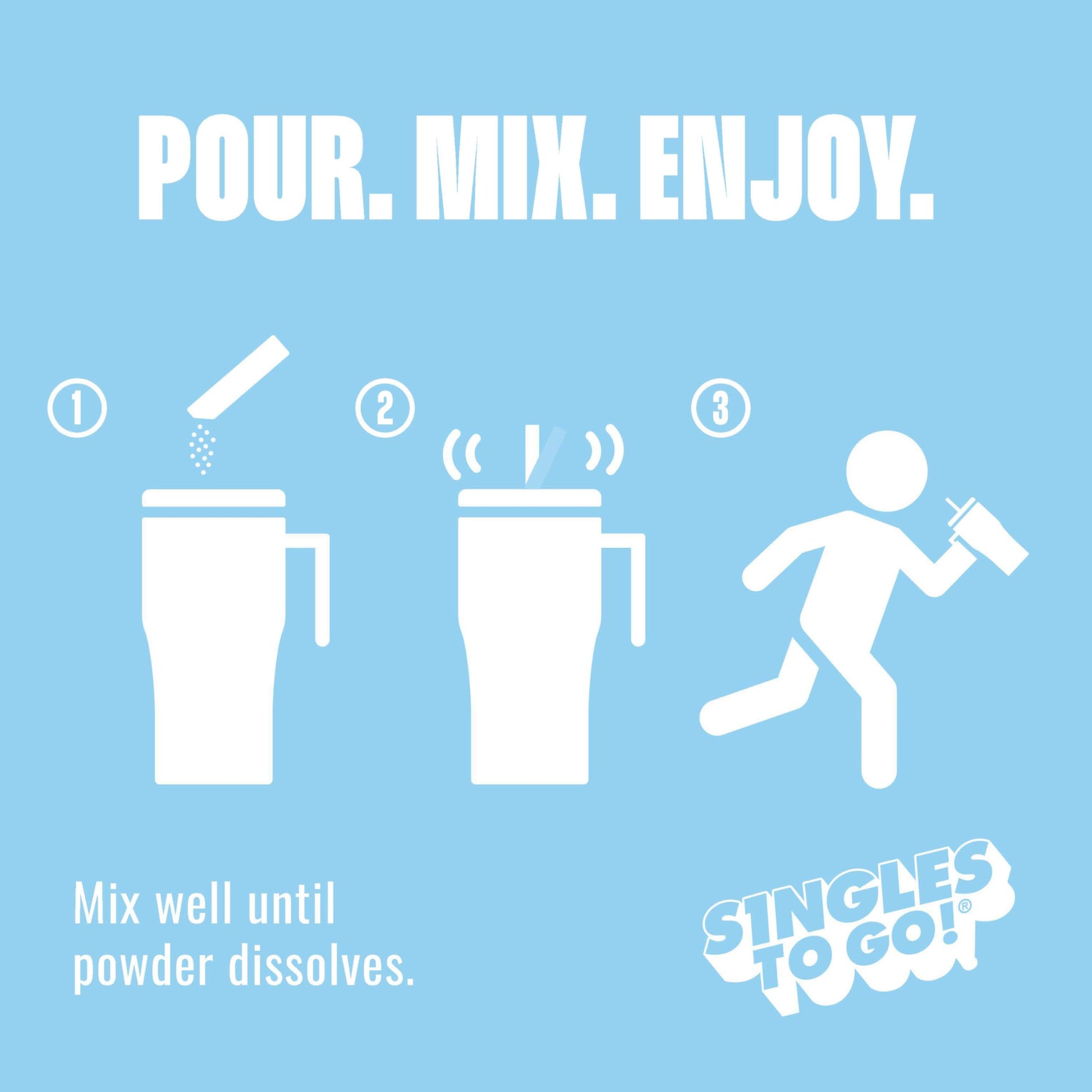 Q: How do I use Starburst Singles To Go drink mix?A: To use Starburst Singles To Go, simply sip from a full 16.9 fl. oz. water bottle to make room for the powder. Pour one stick of the drink mix into the bottle, shake well until mixed, and enjoy a refreshing flavored drink.