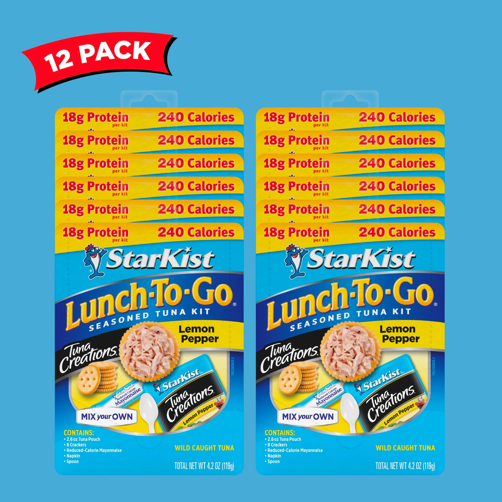 Starkist Lunch-To-Go Tuna Creations Lemon Pepper Mix Your Own Tuna Salad Kit Comes With All Of The Fixings For A Delicious Tuna Salad Made Just The Way You Like It! The Starkist Lunch-To-Go Tuna Creations Lemon Pepper Mix Your Own Tuna Salad Kit Features A 2.6Oz Pouch Of Premium, Wild Caught Light Tuna That Is Delightfully Seasoned Through A Perfect Pairing Of Zesty Lemon And Black Pepper. In Addition To A Starkist Tuna Creations Lemon Pepper Pouch, Youll Find That This Kit Features A Complete Assortment Of 8 Crackers, Reduced-Calorie Mayonnaise, A Napkin, And A Spoon. Simply Tear Open The Starkist Tuna Creations Lemon Pepper Flavor Fresh Pouch* (No Draining Required!), Mix In The Included Reduced-Calorie Mayonnaise To Your Desired Taste, Add The Tuna Mixture To A Crispy Golden Cracker, And Savor The Flavor Of Your Own Zesty Tuna Salad Creation! With 240 Calories And 19G Of Protein Per Kit, Each Starkist Lunch-To-Go Tuna Creations Lemon Pepper Mix Your Own Tuna Salad Kit Is Perfect For Tuna Salad Lovers Who Like To Lunch On The Go! * A Starkist Flavor Fresh Pouch Helps To Preserve The Flavor And Freshness Of Starkist Products. With No Draining Required, A Starkist Flavor Fresh Pouch Makes It Easy To Incorporate Lean Protein Into Busy And Active Lifestyles.