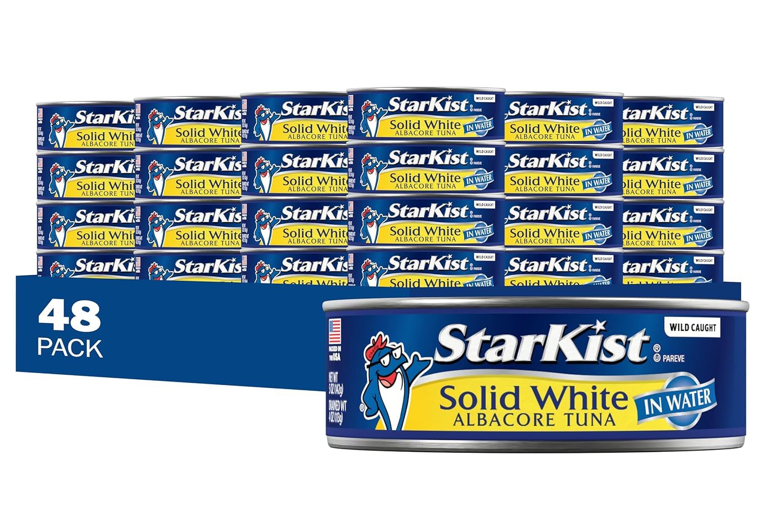 Q: What is the packaging size of StarKist Solid White Albacore Tuna?A: The StarKist Solid White Albacore Tuna in Water comes in a convenient 5 oz can, and this package includes 48 cans, making it easy to stock up for home, office, or on-the-go meals.