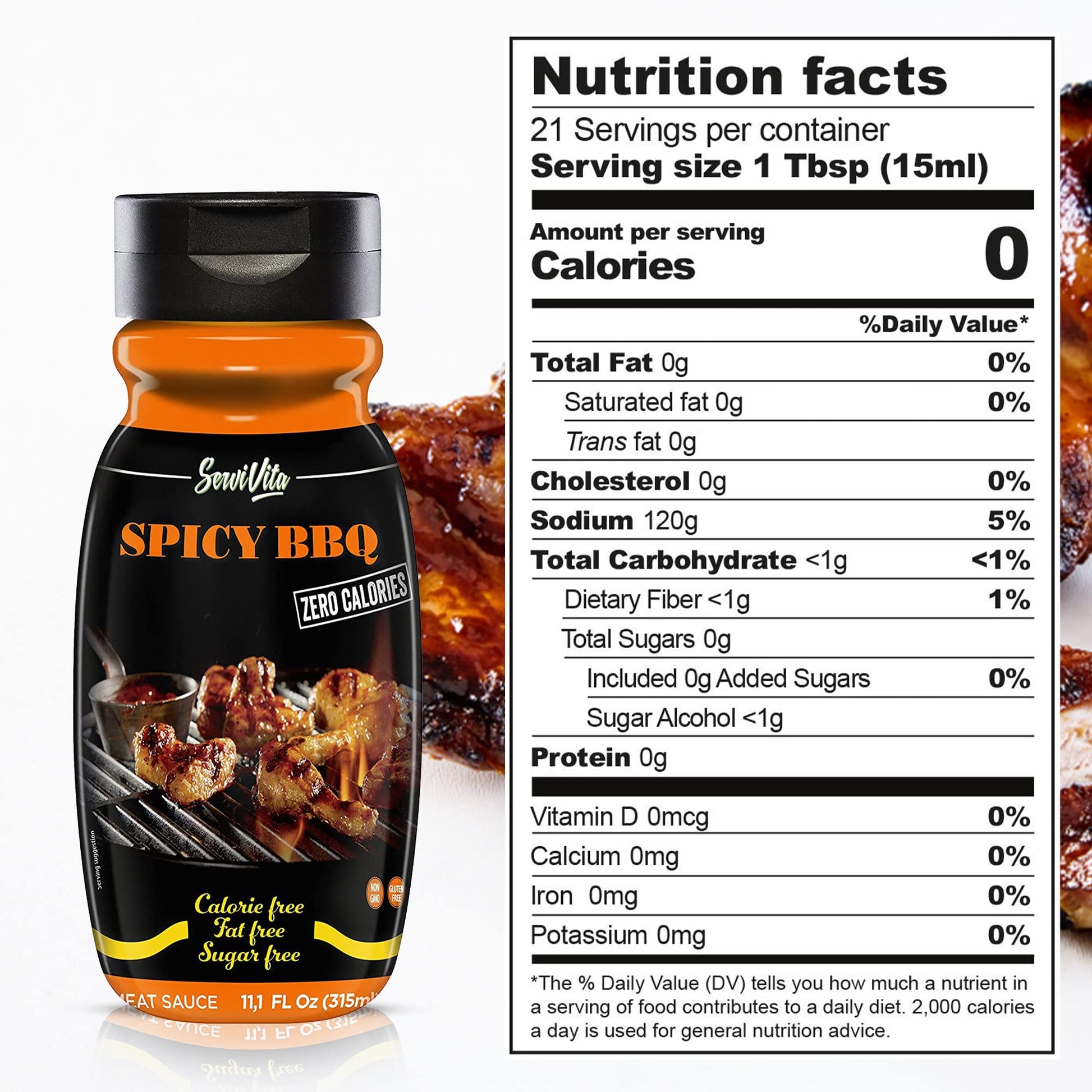 Sugar Free Spicy Bbq Sauce - No Sugar Spicy Bbq Sauce - Sugar Free Spicy Barbecue Sauce - Zero Calories And Fat Free, 11.1 Fl Oz - - Gluten Free, Low Sodium, Low Carb Bbq Sauce - Servivita | Zero Calories, Zero Carbs, Zero Guilt: Despite Its Rich Flavor, Our Spicy Bbq Sauce Has Zero Calories And Zero Carbs, Zero Sugars, Making It A Guilt-Free Addition To Any Meal. | Diet-Friendly: This Sauce Is Not Just Spicy And Delicious, It'S Also Friendly For Various Diets. Whether You'Re On A Keto, Low-Carb, Or Sugar-Free Diet, Our Sauce Lets You Enjoy The Flavors You Love Without Breaking Your Diet Rules. | Great Taste: Despite Being Sugar-Free, This Bbq Sauce Doesn'T Compromise On Flavor. It'S Delicious And Has Just The Right Amount Of Heat, Making It A Great Addition To A Variety Of Dishes. | A Brand That Cares: We'Re Not Just About Delivering Great Taste, But Also Promoting Great Health. Our Commitment Is To Create Products That Allow Our Customers To Maintain A Balanced Diet Without Ever Compromising On Flavor.