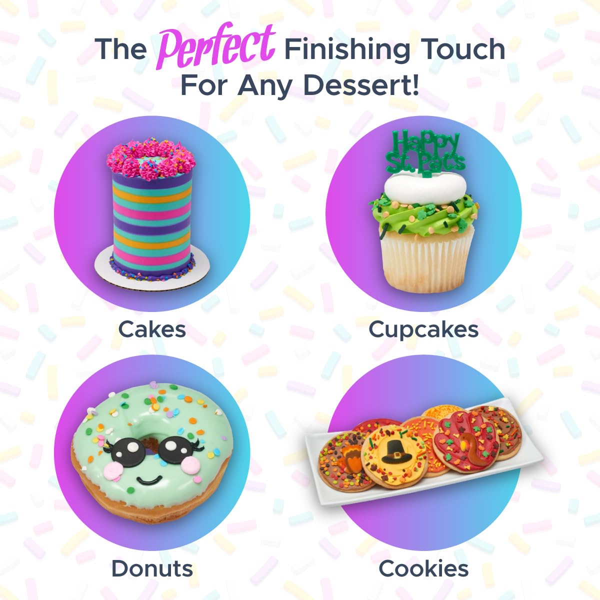 Q: How can I use these sprinkles for decorating?A: These versatile sprinkles can be used to decorate cakes, cupcakes, cookies, and other desserts. Simply sprinkle them over your creations for a burst of color and fun.