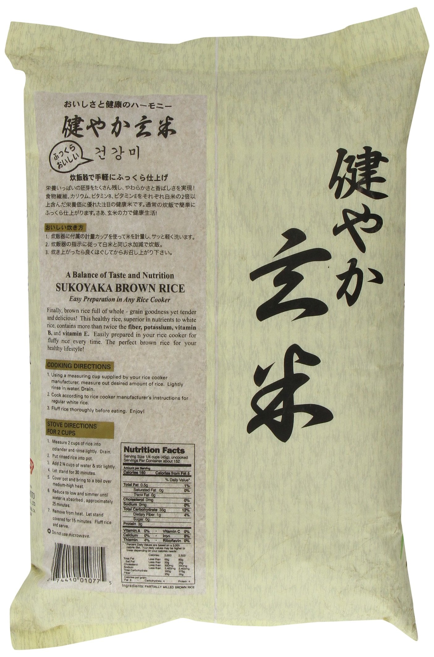 - Q: How do I cook Sukoyaka Brown Rice, Genmai, for the best results? A: To cook Sukoyaka Brown Rice, rinse the rice under cold water to remove excess starch. Use a ratio of 1 cup of rice to 2.5 cups of water. Bring to a boil, then reduce the heat and simmer for about 45-50 minutes until the water is absorbed and the rice is tender.