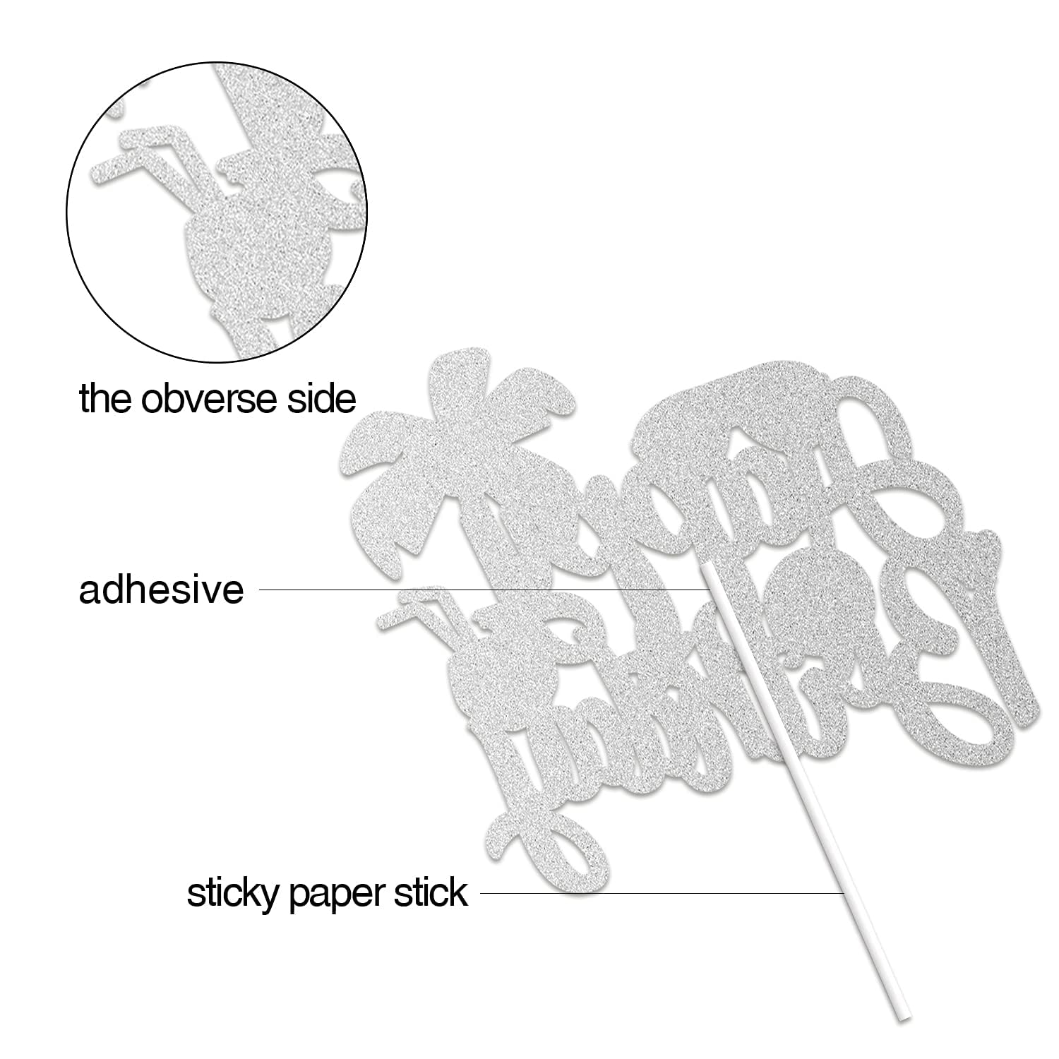 View compareLINGBOOM Blue Glitter Summer Beach Coconut Happy Birthday Cake Topper for Pool Party Decoration and Summer Holiday Celebrations