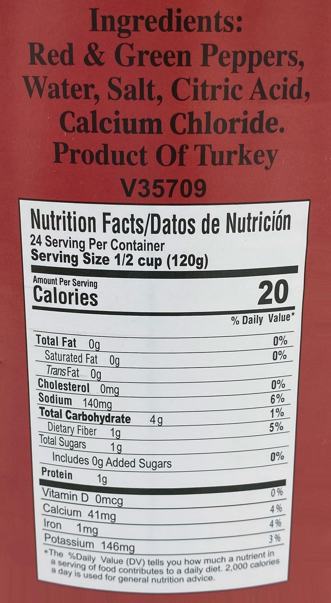 Q: What are Supremo Italiano Red & Green Pepper Strips used for?A: Supremo Italiano Red & Green Pepper Strips are versatile ingredients perfect for garnishing dishes, adding flavor to fajitas, enhancing taco salads, and complementing various Mexican and Southwestern-style recipes.