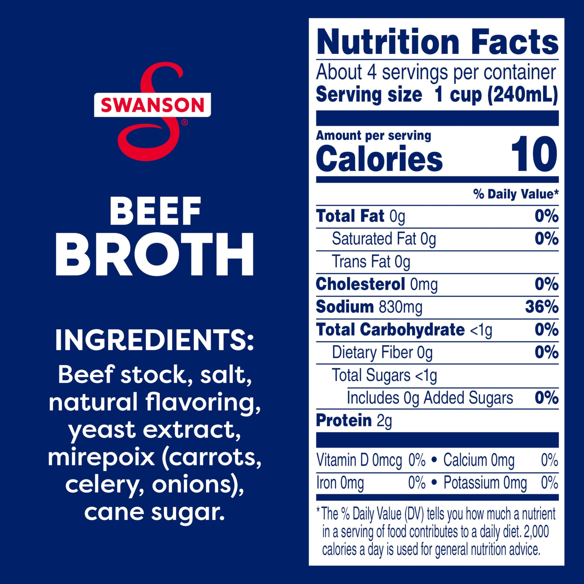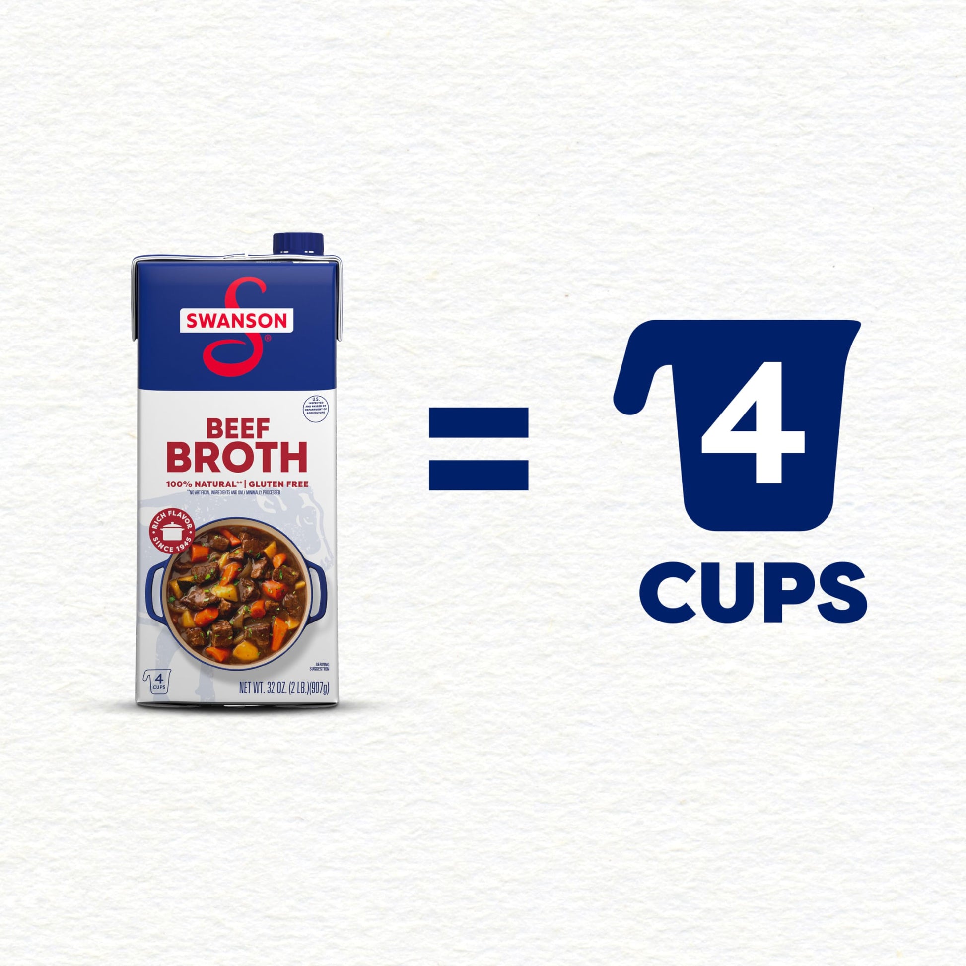 Elevate Your Homemade Meals With The Rich Roasted Flavor Of Swanson Beef Broth. Swansons Beef Broth Brings Together The Perfectly Balanced Flavors Of Roasted Beef And Vegetables Picked At The Peak Of Freshness In A Convenient Recyclable Carton. And Just Like Homemade, Our Broth Uses Only 100% Natural (1), Non-Gmo Ingredients, With No Msg Added (2), No Artificial Flavors Or Colors, And No Preservatives. More Convenient Than Beef Bouillon, This Fat-Free, Gluten-Free Beef Broth Is A Versatile Ingredient For Your Everyday Cooking, Adding Flavor And Moisture To Both Entrees And Side Dishes. Its Great As A Stew Or Soup Base, And It Can Be Used Instead Of Water To Boost Rich Flavor In Rice, Pasta And Veggies. Swanson Beef Broth Is A Must-Have For Your Holiday Cooking, Bringing Richer, Elevated Homemade Flavor To Beef-Centered Recipes Such As Pot Roast, Brisket And More. Its Not Just Any Broth. Its Swanson. In Addition To Beef Broth, Swanson Offers A Variety Of Other Delicious Broths, Including Chicken And Vegetable. Try Swanson Beef Stock For Even Richer Flavor And A Heavier Texture. (1) No Artificial Ingredients And Only Minimally Processed (2) Except For The Small Amount Naturally Occurring In Yeast Extract