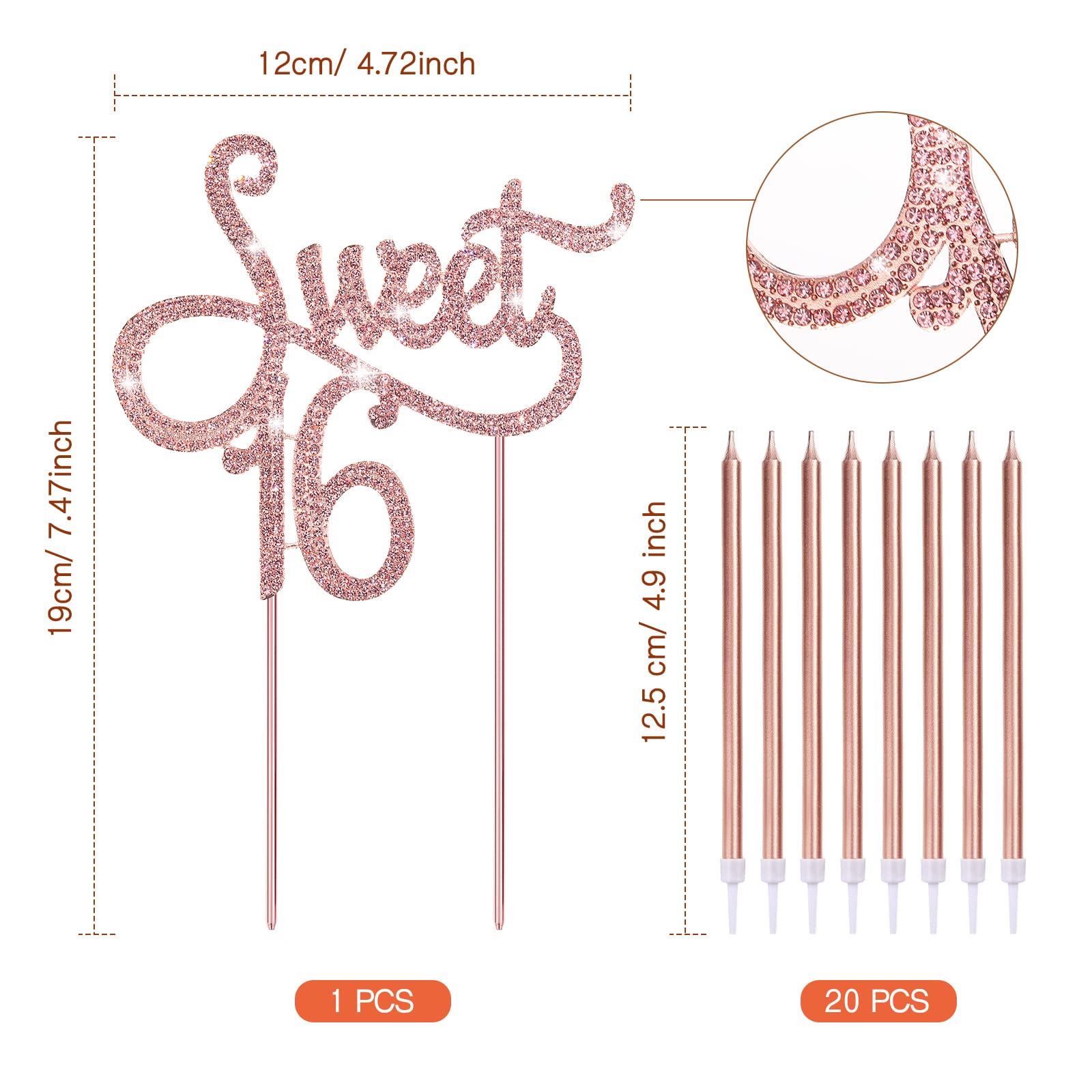 Features:Have A Good Time:You Can Use The Sweet Sixteen Cake Topper And Sweet 16 Cake Candles To Make Decorations With Your Family Members, Which Will Make Your Big Day More Meaningful, And Enhance Your Relationship.Birthday Gifts:The Happy Birthday Topper And Birthday Candles Are Beautiful Gifts For Your Daughter, Little Sister, Relatives And Friends Who Are Going To Hold A 16Th Birthday Party, Or A 16Th Anniversary Party, They Will Be Satisfied With These Beautiful Decorations.Specifications:Material: Sweet 16 Cake Topper: Alloybirthday Candles: Wax, Plasticcolor: As Shownsize: Sweet 16 Cake Topper: Approx. 12 X 10 Cm/ 4.72 X 3.93 Inchesbirthday Candles: About 12.5 Cm/ 4.9 Inches Longpackage Includes:1 X Sweet 16 Cake Topper20 X Sweet 16 Birthday Candlesnotes:Manual Measurement, Please Allow Slight Errors On Size.The Color May Exist Slight Differences Due To Different Screen Displays.