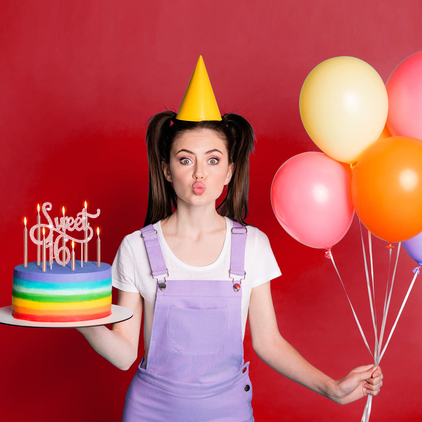 Q: How can I enhance the presentation of my Sweet 16 cake with these decorations?A: To enhance the presentation, place the glittery Sweet 16 cake topper on top of the cake and arrange the birthday candles around it, creating an elegant and festive atmosphere for your celebration.