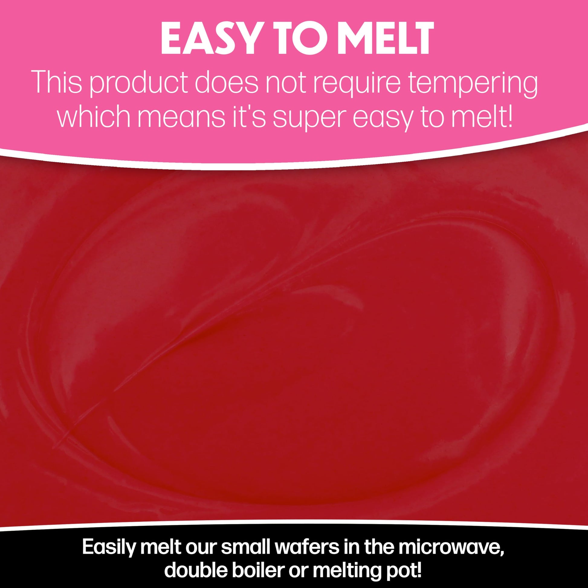 Q: How do I use Sweet Shoppe Cardinal Red Melting Wafers?A: To use Sweet Shoppe Cardinal Red Melting Wafers, simply melt them in a microwave or double boiler until they reach a smooth, velvet consistency. There's no need for tempering, making them easy to use for dipping and drizzling on various treats.