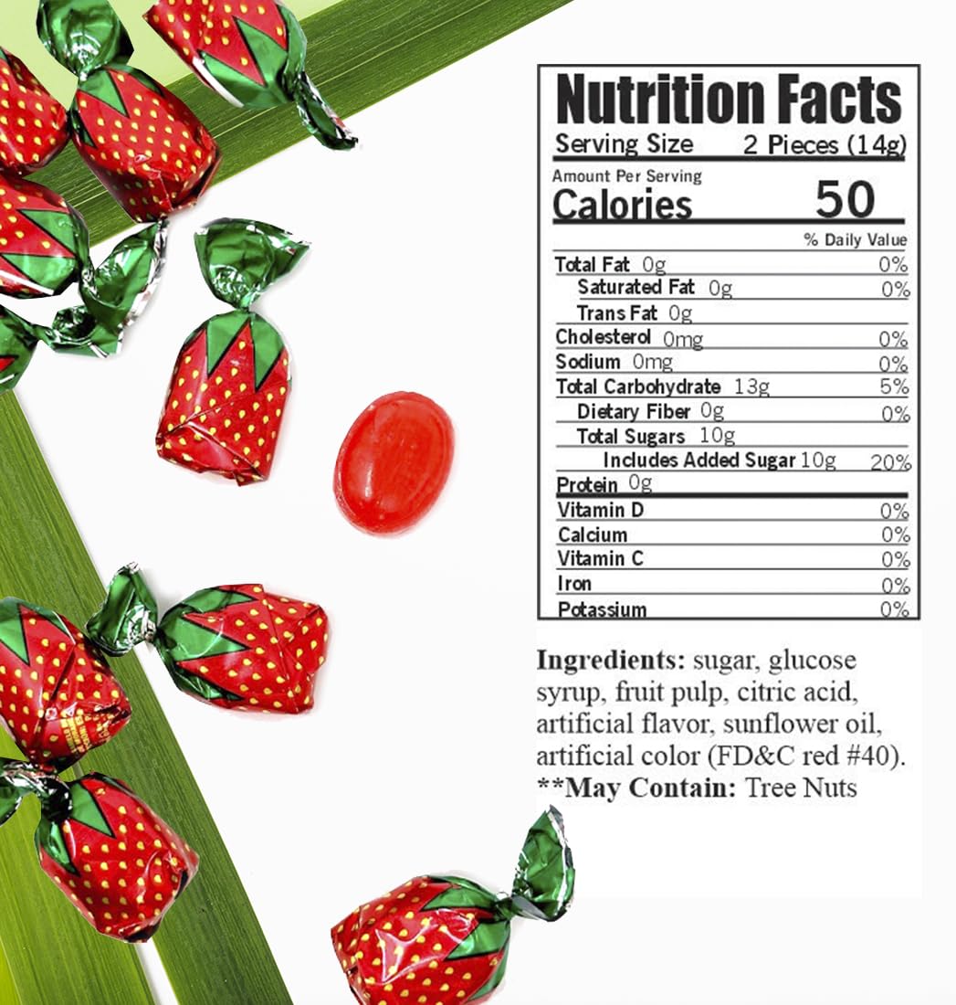 Delicious Strawberry Bon Bons Hard Candies With Brightly Colored Strawberry Sachet Wraps!