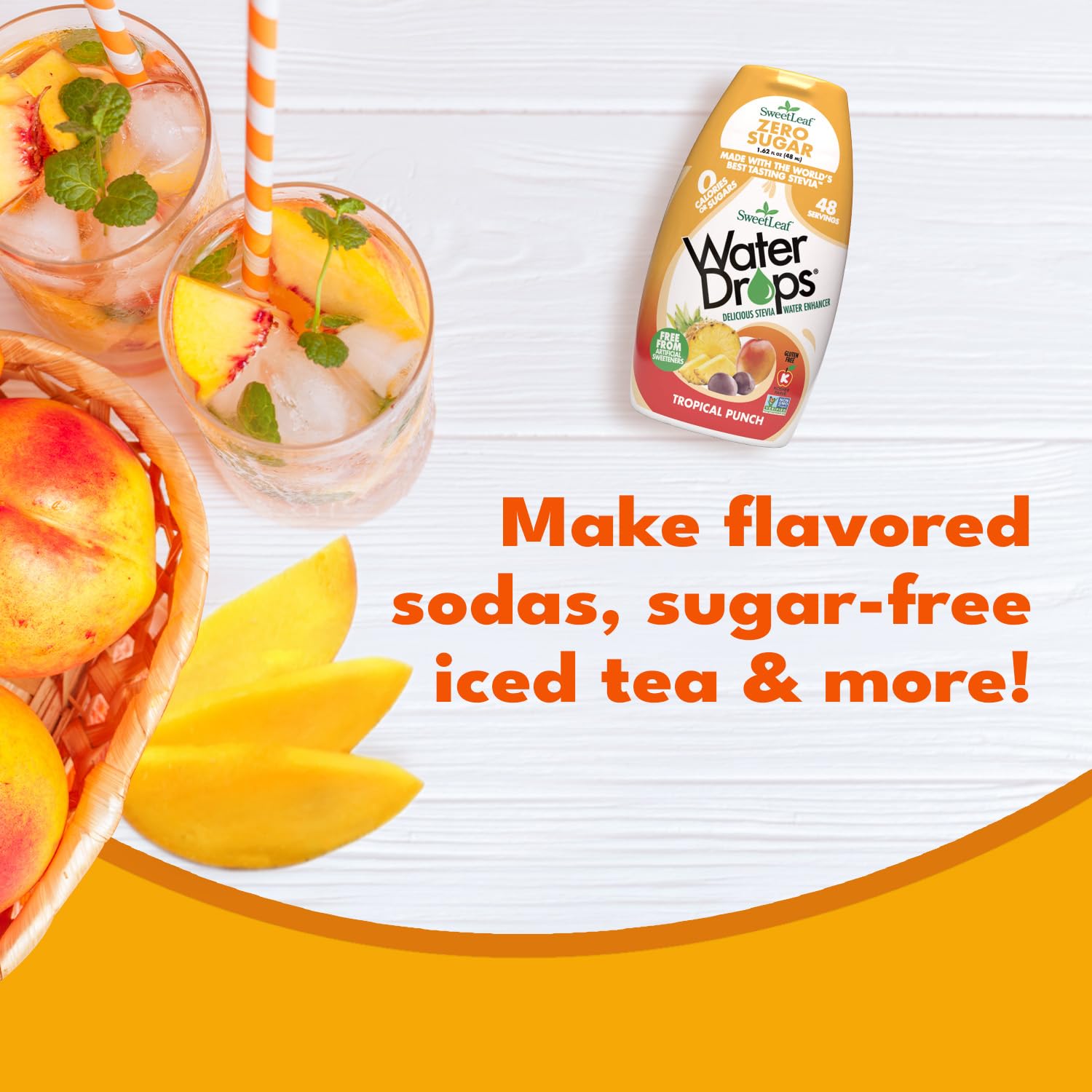 Q: How do I use SweetLeaf Water Drops?A: To use SweetLeaf Water Drops, simply squeeze the desired amount into your water, unflavored soda water, or smoothie for a burst of tropical fruit punch flavor.