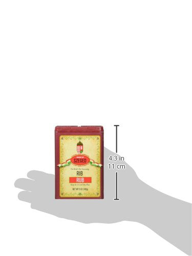- Q: What is the size of the Szeged Rib Rub packaging? A: Szeged Rib Rub comes in a 5-ounce tin, and this product is sold in a convenient pack of 6. This size is ideal for home cooks who enjoy barbecuing and want to keep a supply on hand.