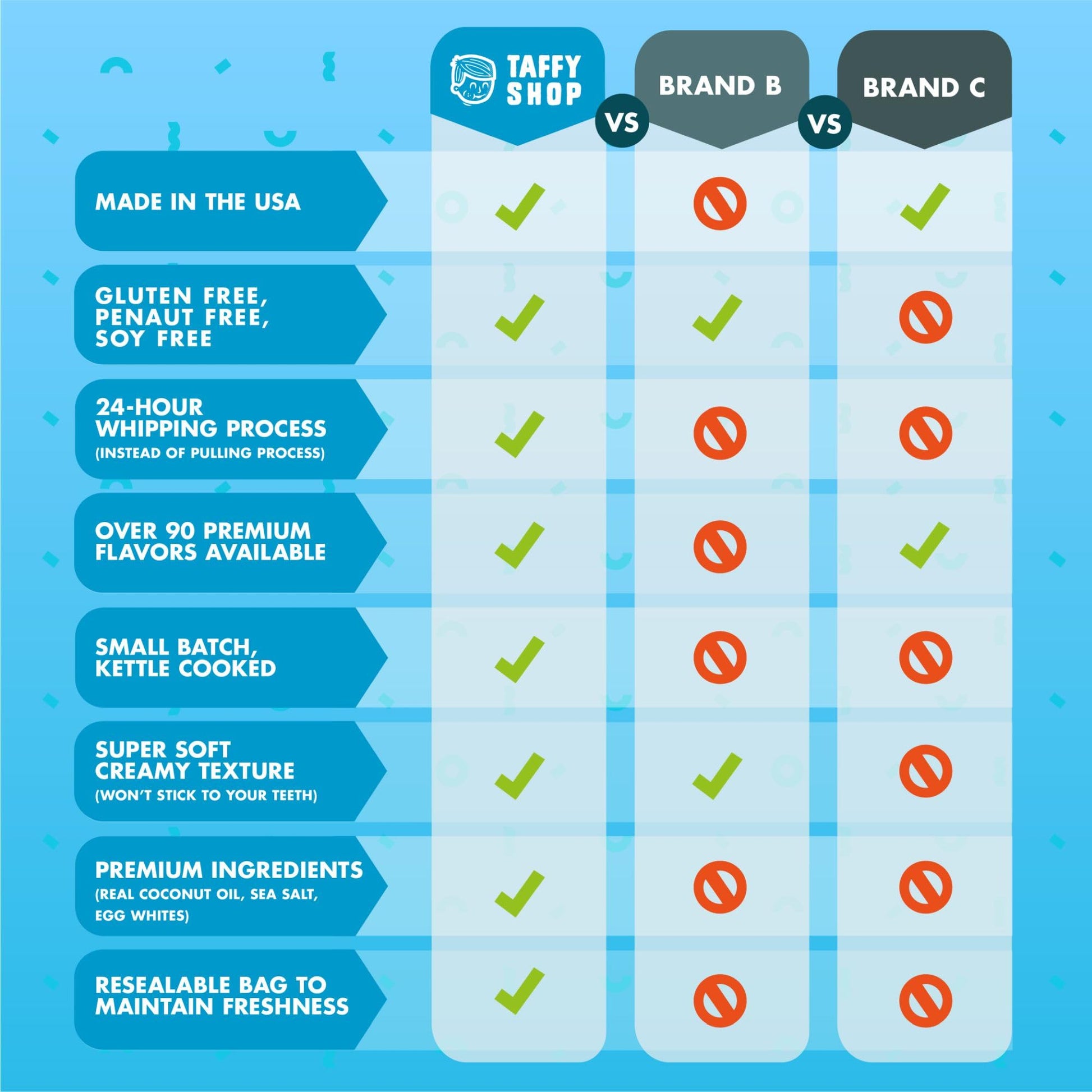 Q: Is the salt water taffy gluten-free?A: Yes, the Taffy Shop's salt water taffy is gluten-free, making it a suitable treat for those with gluten sensitivities.