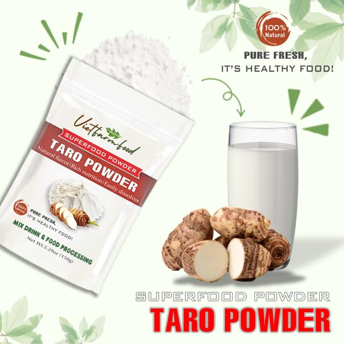 Q: What can I use TARO POWDER for?A: TARO POWDER is versatile and can be used to mix with fresh fruit juices, smoothies, cocktails, and even as a seasoning for cooking. It's a great addition to various recipes for enhanced flavor.