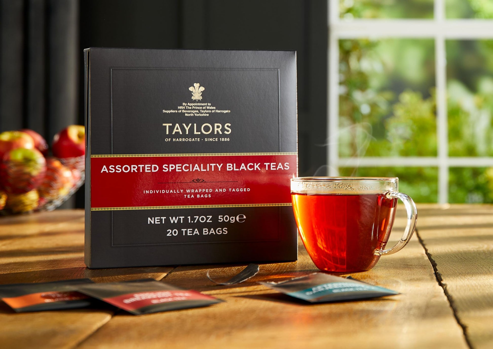 - Q: What types of black teas are included in Taylors of Harrogate's specialty variety pack? A: The Taylors of Harrogate Assorted Specialty Black Teas pack includes four classic blends: English Breakfast, Earl Grey, Assam, and Afternoon Darjeeling, allowing you to enjoy a rich variety of flavors.