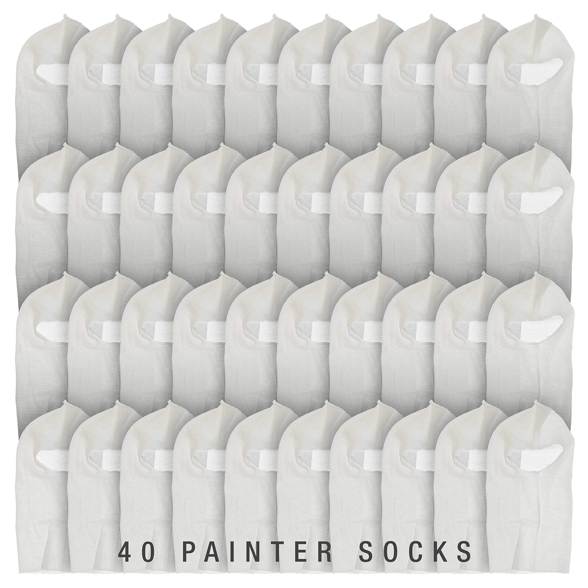 Pack of 40 Premium Painters Spray Socks. Made of Lint-Free Premium Knit Cotton with A Three-Way Stretch For A Snug Head Fit. They Are Lightweight, Breathable and Washable. | Socks securely stretch to cover the entire head and neck, but they leave a facial opening to allow exposure of eyes, nose and mouth. | Protects Head, Hair, Face and Neck From Paint Over-Spray, Sanding Dust, Dirt and Debris and Other Particulates. | Wear A Sock By Itself Or Along with Masks, Respirators, Goggles, Hardhats Or Other Safety Protective Gear. | One Size Fits All. Measurements Unstretched: 15'' Long By 7'' Wide with A 4'' Face Opening.