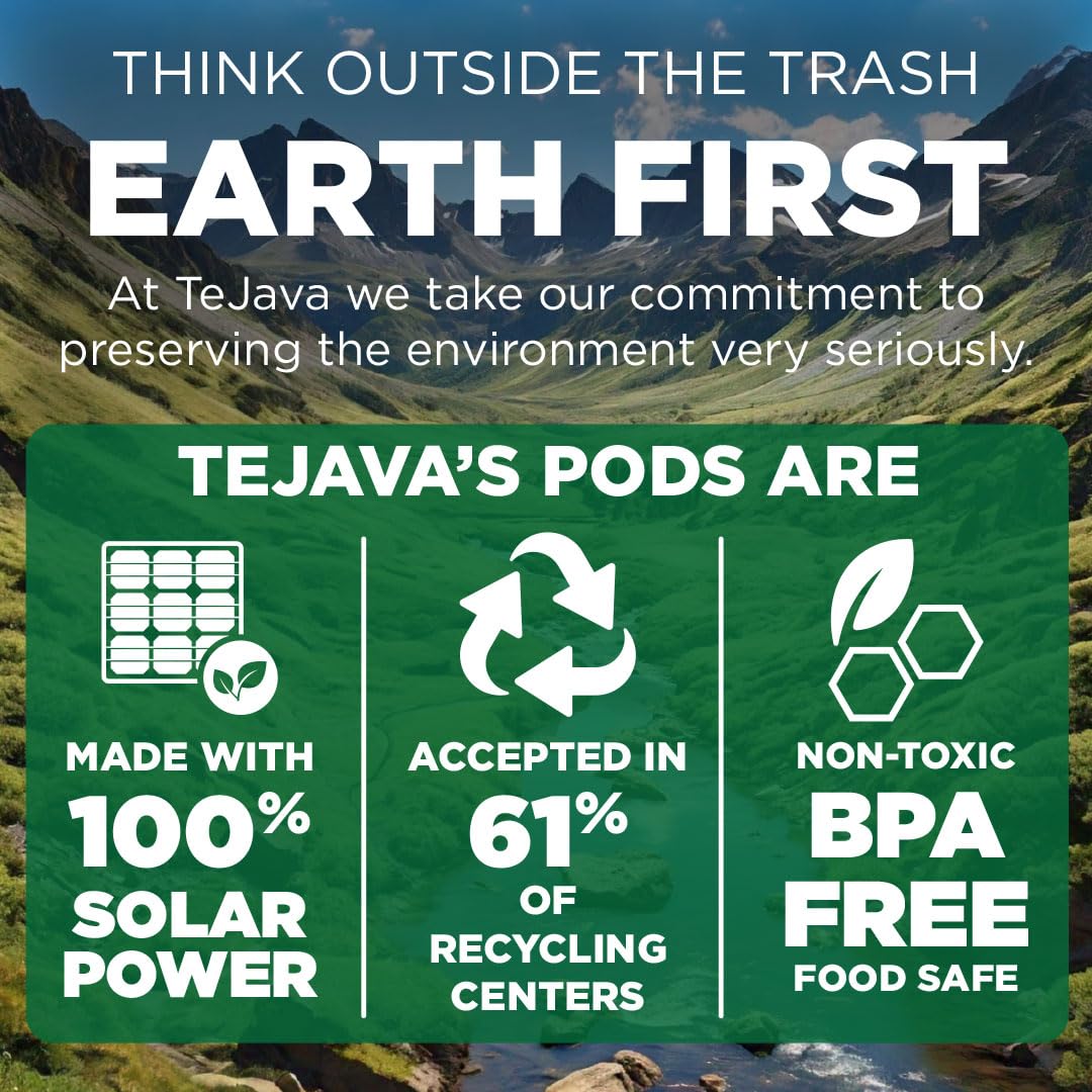 Q: Are the tea pods recyclable?A: Yes, the Tejava tea pods are made from recyclable #5 plastic materials and feature easy peel tabs for convenient recycling across the USA.