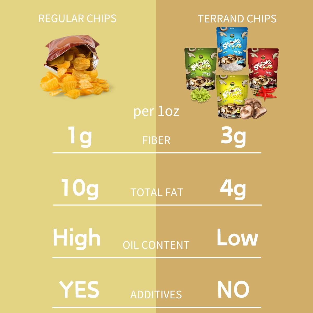 - Q: What are the main ingredients in the Terraland Shiitake Mushroom Snack Variety? A: The Terraland Shiitake Mushroom Snack Variety Bundle is primarily made from high-quality shiitake mushrooms, which are vacuum fried to preserve their natural flavor and nutritional value. The variety pack includes Original, Wasabi, Spicy, and Sea Salt flavors, all made from plant-based ingredients.