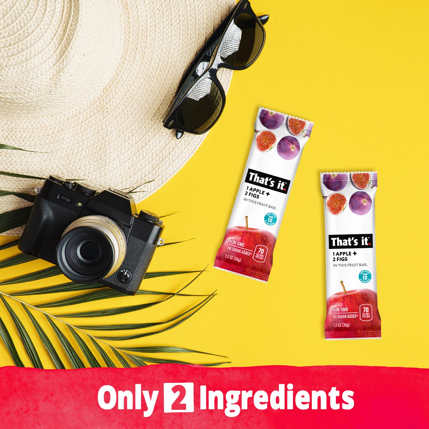 Q: What are the main ingredients in That's it. Apple + Fig Fruit Bars?A: That's it. Apple + Fig Fruit Bars are made from 100% natural ingredients, specifically just apple and fig, providing a clean and simple snack without any added sugars, preservatives, or concentrates.