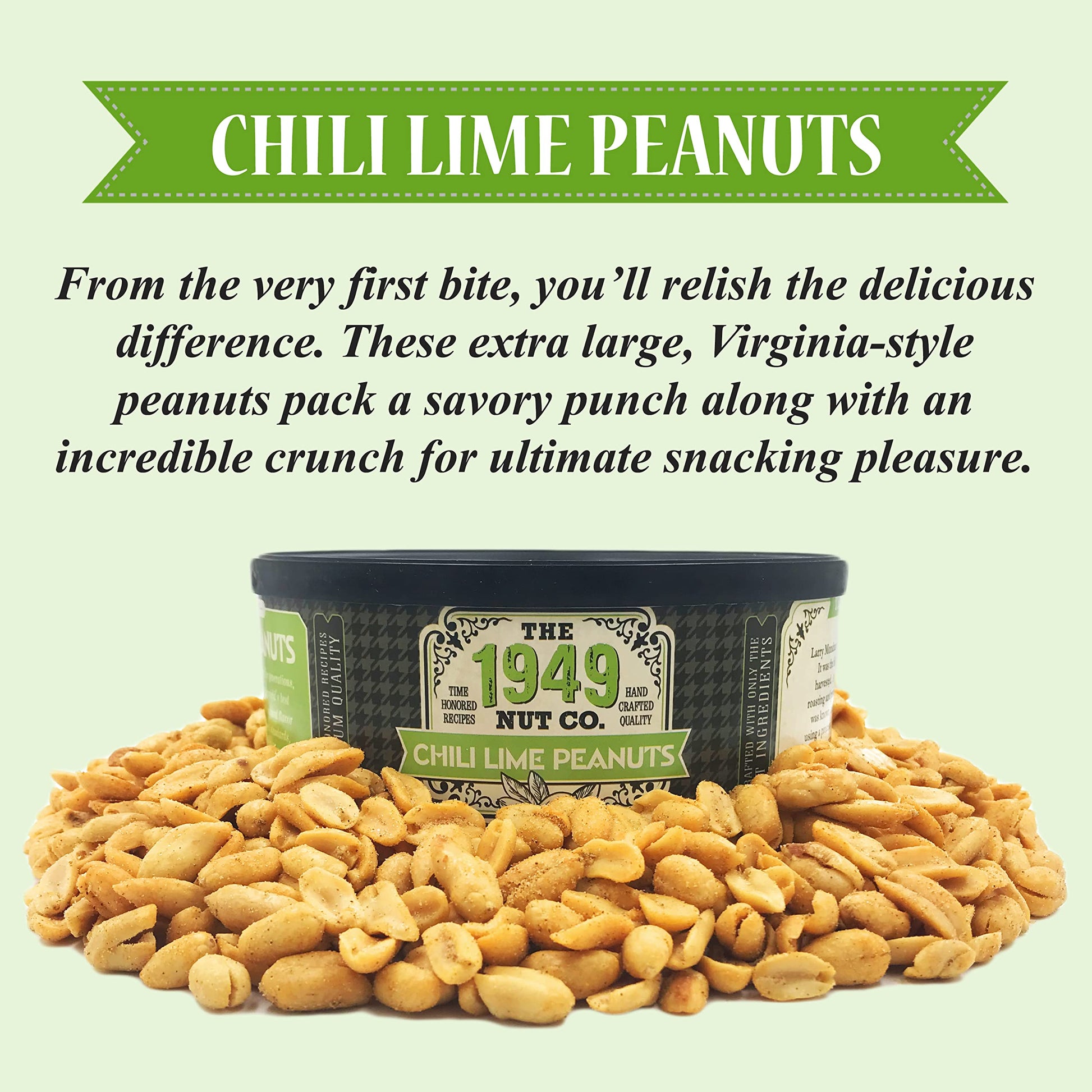 Discover the delightful taste of Hand-Crafted Chili Lime Peanuts from The 1949 Nut Co. These gourmet snacks are perfect for any occasion, whether youre looking to satisfy your snack cravings or impress your guests at gatherings.