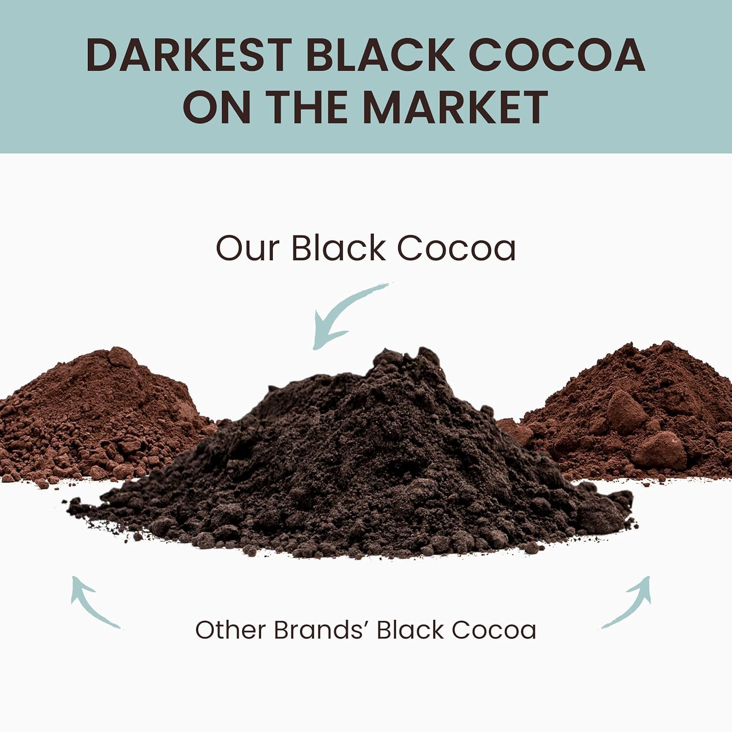 - Darkest Black Natural Coloring Agent: Enhance your chocolate cakes, cookies, hot chocolate, smoothies, and other sweet treats with our intensely dark cocoa powder. This natural coloring agent gives your creations a rich, deep black hue—perfect for bold, dramatic desserts! Plus, it's 100% vegan and gluten-free!