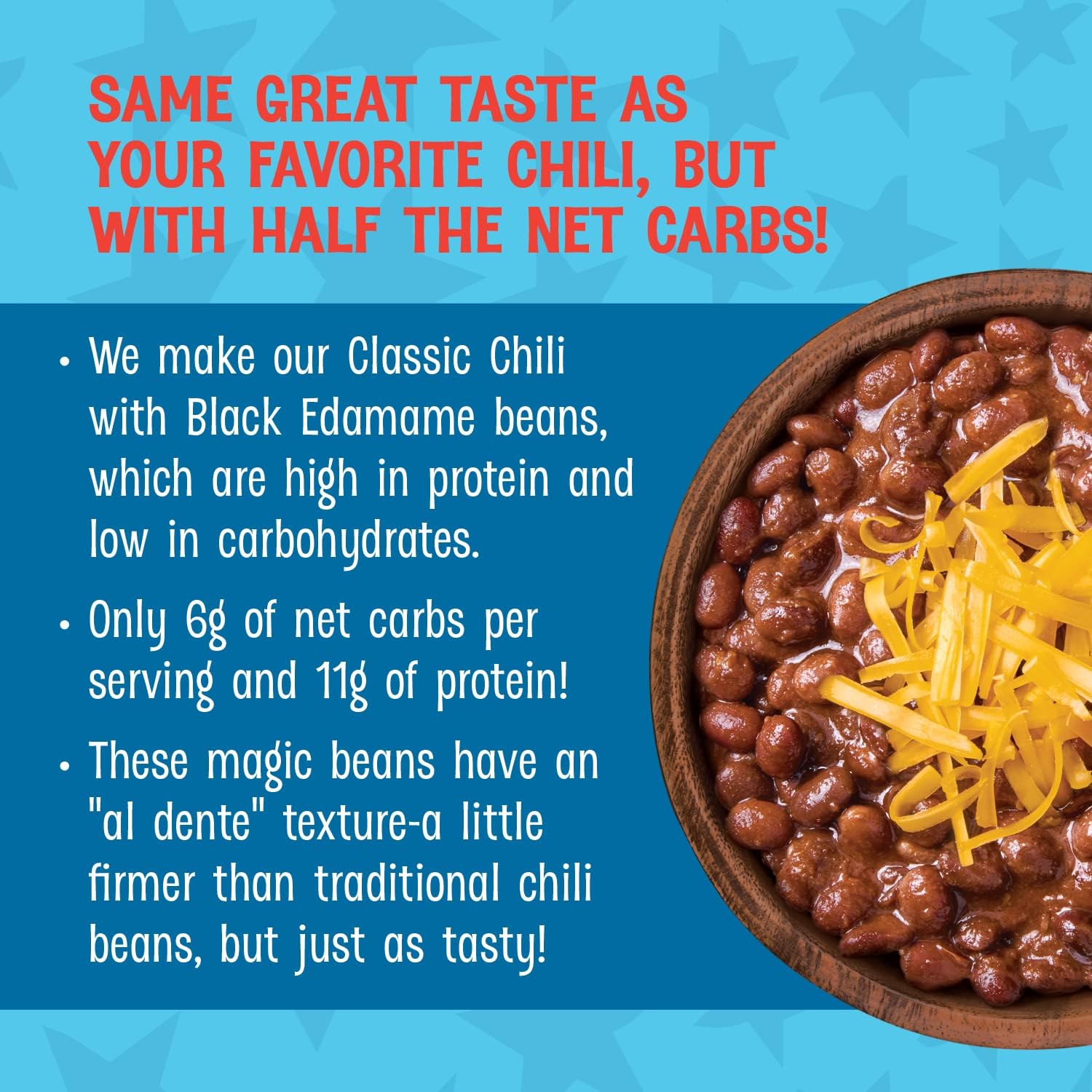 Q: What are the nutritional benefits of the Low-Carb Classic Chili?A: Each serving of the Low-Carb Classic Chili contains 11 grams of plant protein and 6 grams of fiber, making it a nutritious option for those seeking low-carb meals.