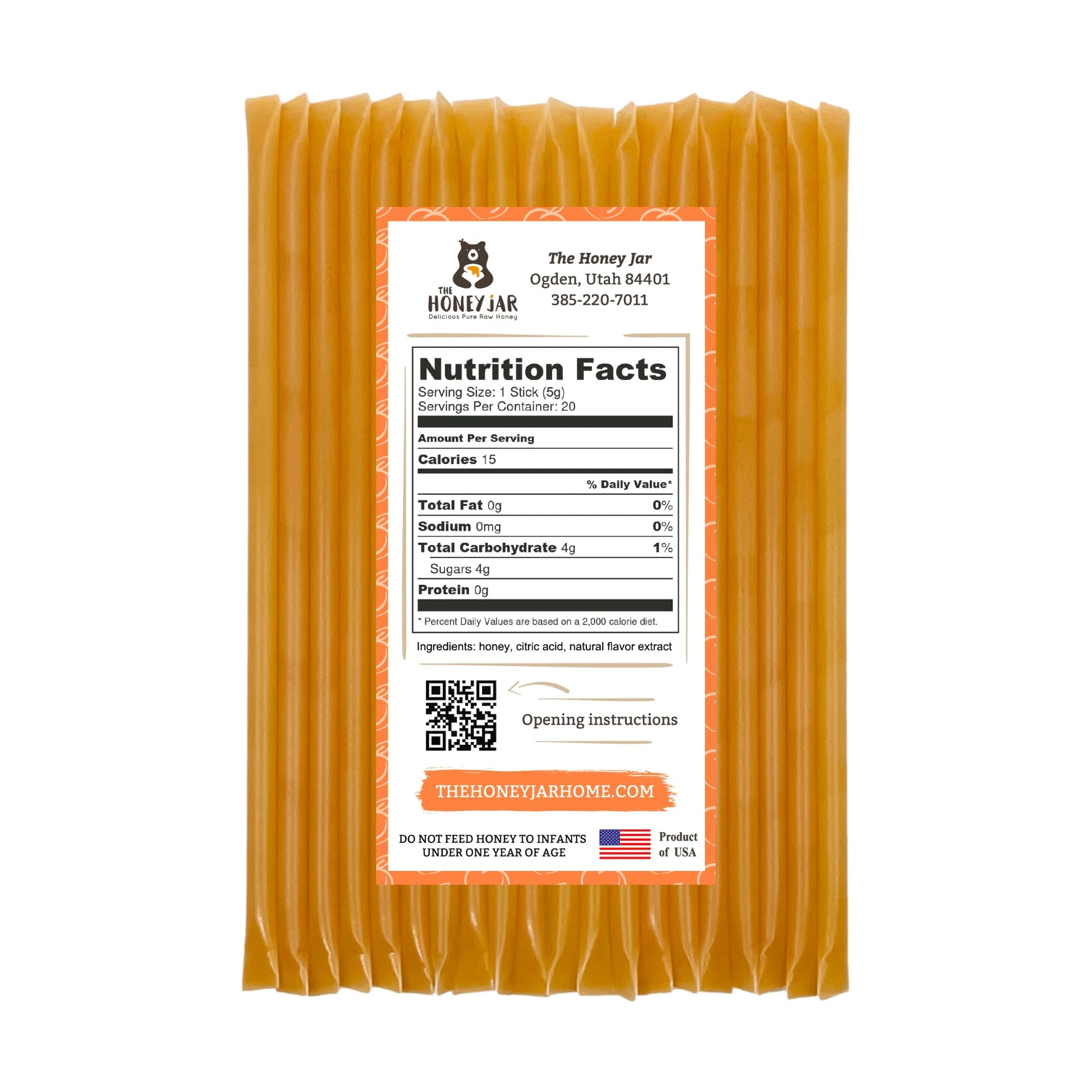Honey Sticks By The Honey Jar Are A Fun And Exciting Way To Enjoy Honey On The Go. Each Honey Stick Is Made By Filling A Bpa-Free Plastic Straw With Pure American Honey That Has Been Selected To Offer A Sweet And Tasty Treat. Kids Love The Delicious Sweet Taste And Adults Love That They Are A Healthy Alternative To Overly Processed Sugars. At Only 15 Calories Per Stick, Each Honey Stick Can Satisfy A Sweet Tooth And Not Throw You Off Your Diet. Keep Them In Your Purse, Car, Lunch Box, Backpack Or On Your Desk. Enjoy Them While Camping, Hiking, Kayaking, In Your Office Or At A Baseball Game. Each Bag Is Labeled With Our Contact Information In Case You Need Additiona Assistance. Enjoy!
