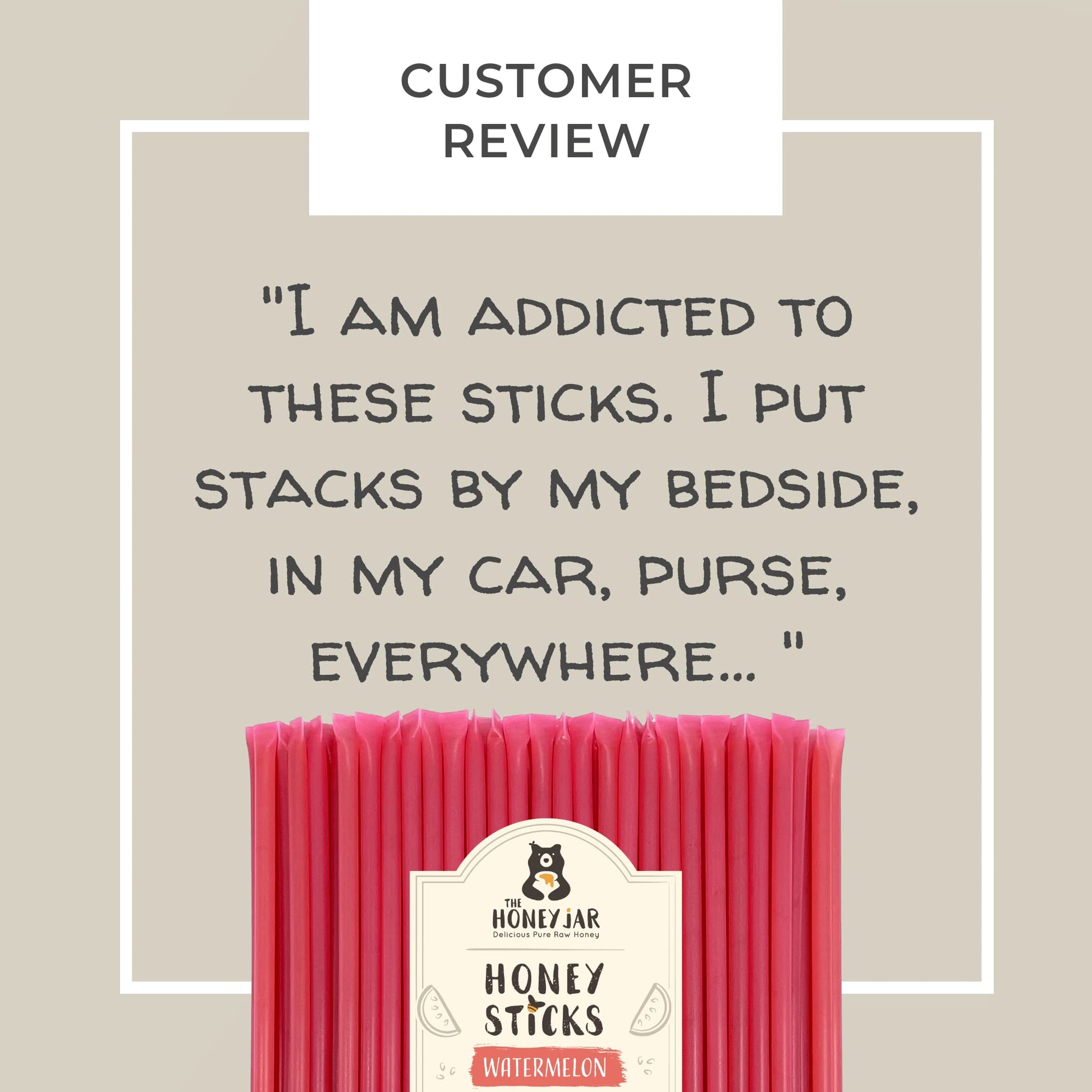 Q: What are the ingredients in The Honey Jar Watermelon Flavored Raw Honey Sticks?A: The Honey Jar Watermelon Flavored Raw Honey Sticks contain pure raw honey and natural watermelon flavoring. There are no added sugars, artificial flavors, or water, ensuring you enjoy the healthy benefits of honey.