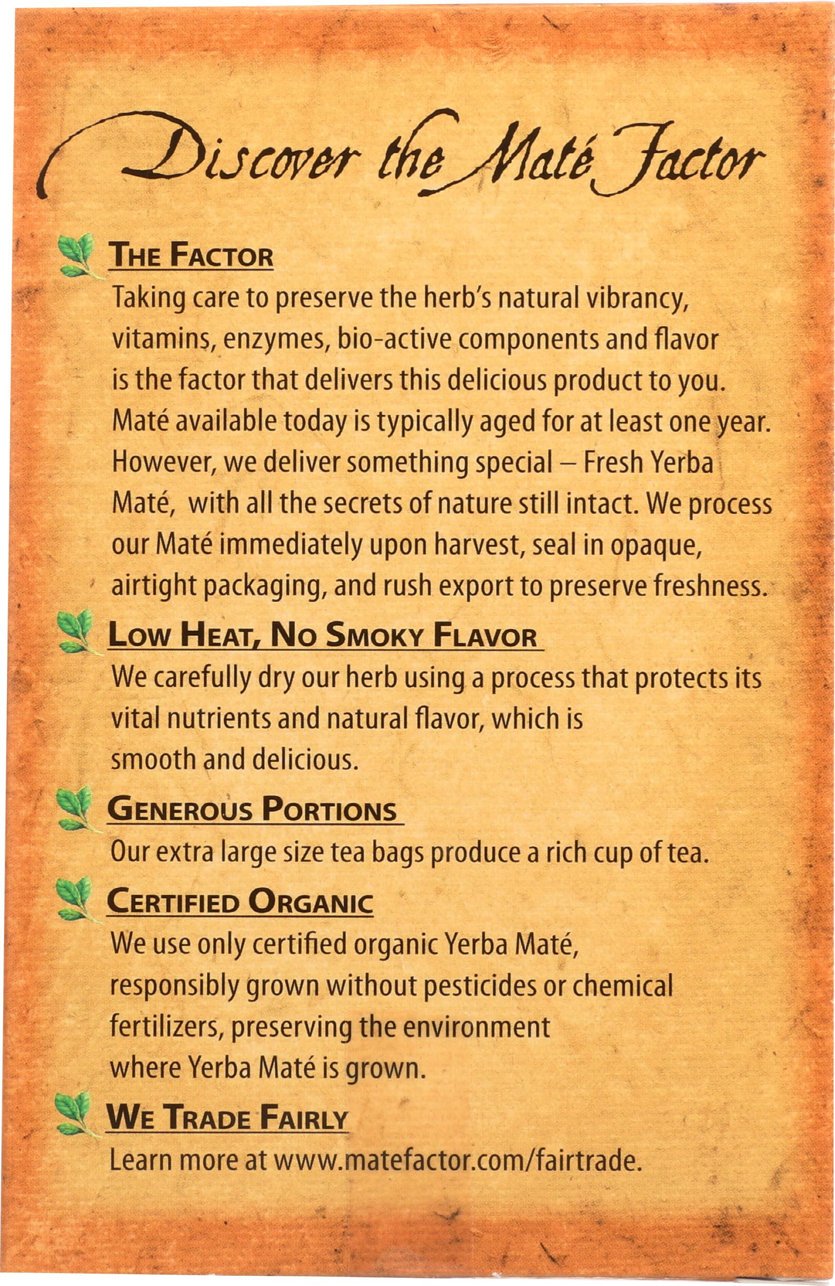 The Mate Factor Organic Yerba Mate Tea chai -- 20 Tea Bags