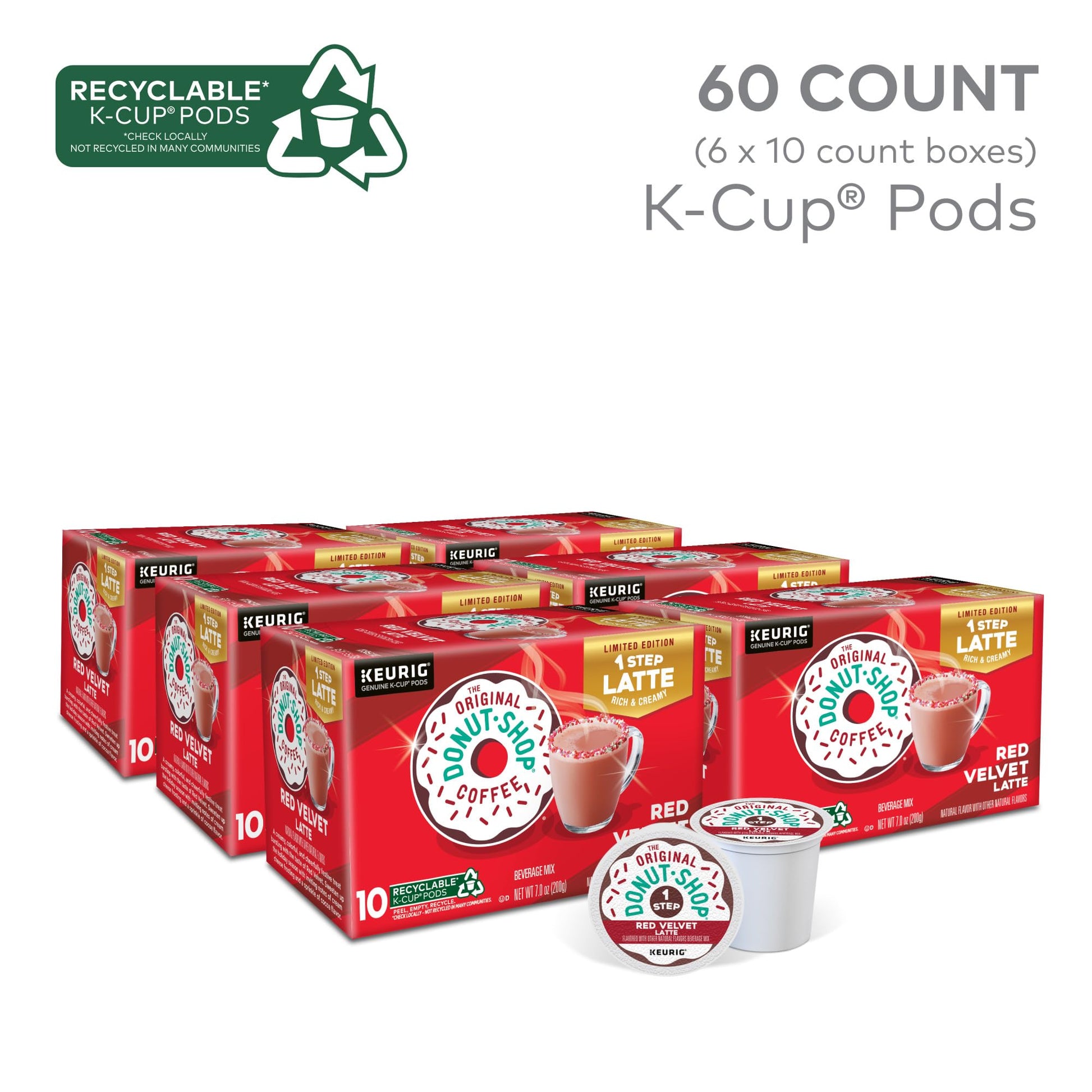 View compareThe Original Donut Shop Red Velvet Latte K-Cup Pods, 60 Count (6 Packs of 10)