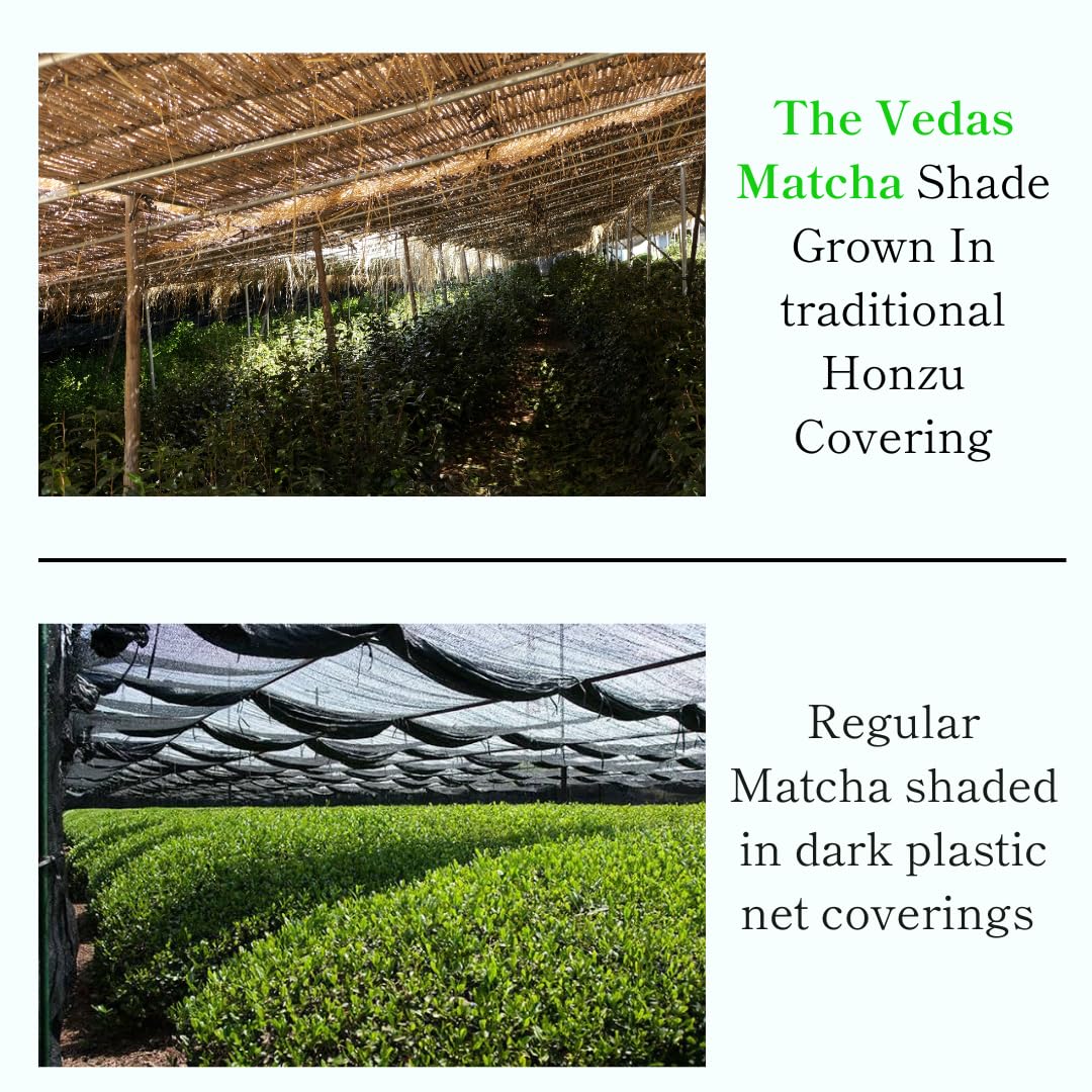 - Q: What makes The Vedas Matcha different from other matcha powders? A: The Vedas Matcha stands out due to its unique harvesting method, where the tea leaves are shade-grown for 40-45 days, compared to the typical 20 days. This process enhances the vibrant green color and creamy texture, resulting in a richer umami flavor.