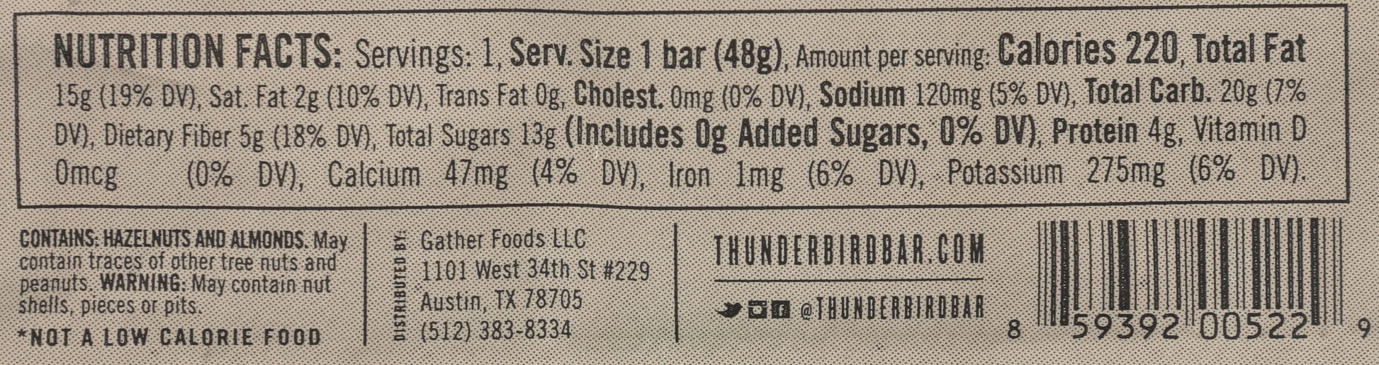 Hazelnuts, Cacao And Coffee Make For The Perfect Breakfast Bar Or To Satisfy That Mocha Fix Any Time Of Day. If You Are A Coffee Drinker Then This Is The Bar For You. Thunderbird Bars Are Made With Real Food Ingredients And Are Certified Vegan, Paleo And Include No Added Sugar Whatsoever.
