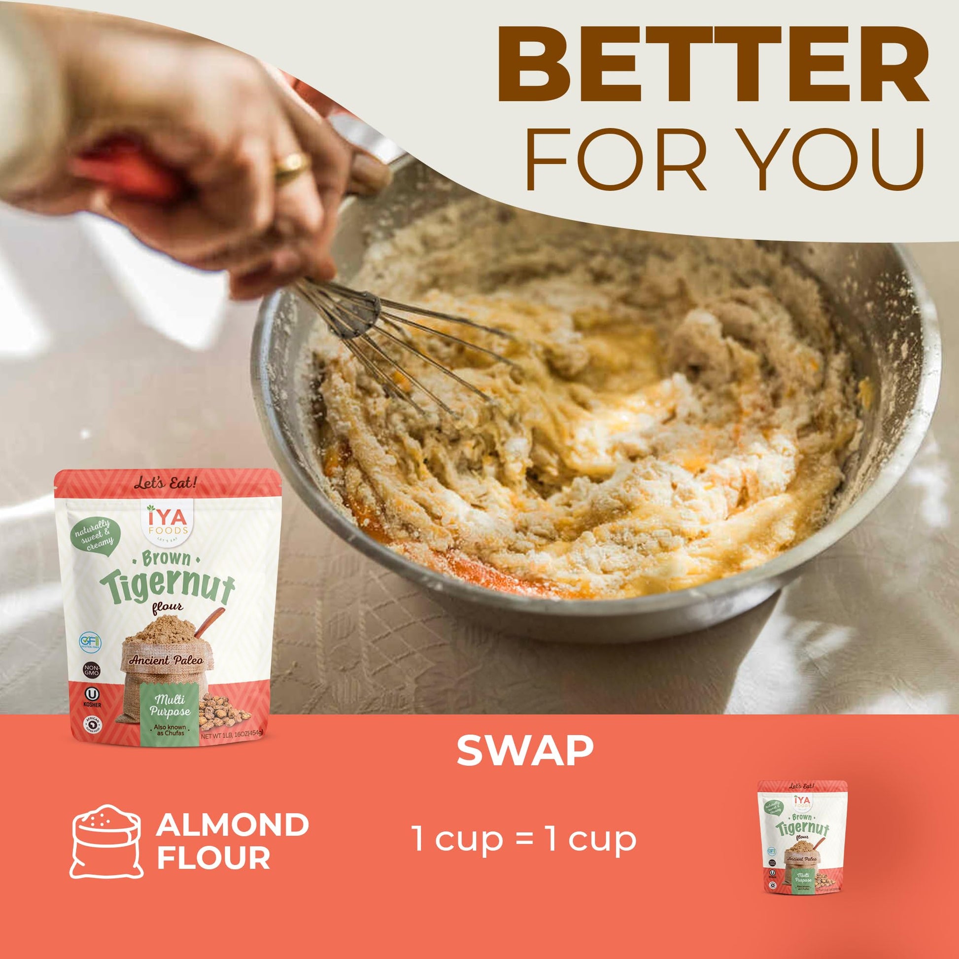Q: Is Iya Foods Tigernut Flour gluten-free?A: Yes, Iya Foods Tigernut Flour is certified gluten-free, making it a great choice for those with gluten sensitivities or celiac disease.