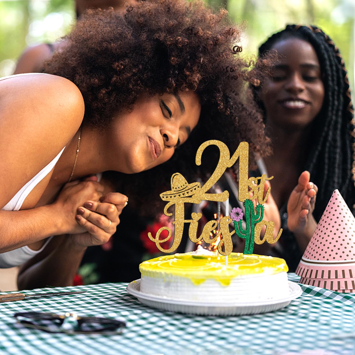 Q: What size cakes can the Tivurcia Fiesta 21st Cake Topper be used on?A: The Tivurcia Fiesta 21st Cake Topper is designed to fit well on cakes that are 6-10 inches in size, making it a versatile choice for a variety of birthday cakes.