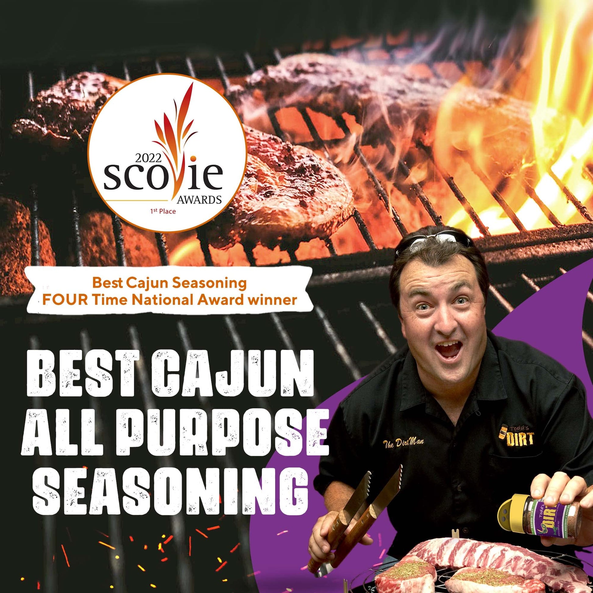 Q: What is Todd’s DIRT Bayou DIRT seasoning made of?A: Todd’s DIRT Bayou DIRT seasoning is crafted with a blend of 16 spices, including Paprika, Pepper, Onion, Garlic, Cayenne Pepper, Chili Powder, Chipotle Powder, Oregano, Basil, Parsley, Thyme, Sage, Rosemary, and more, making it a flavorful Cajun-style seasoning.