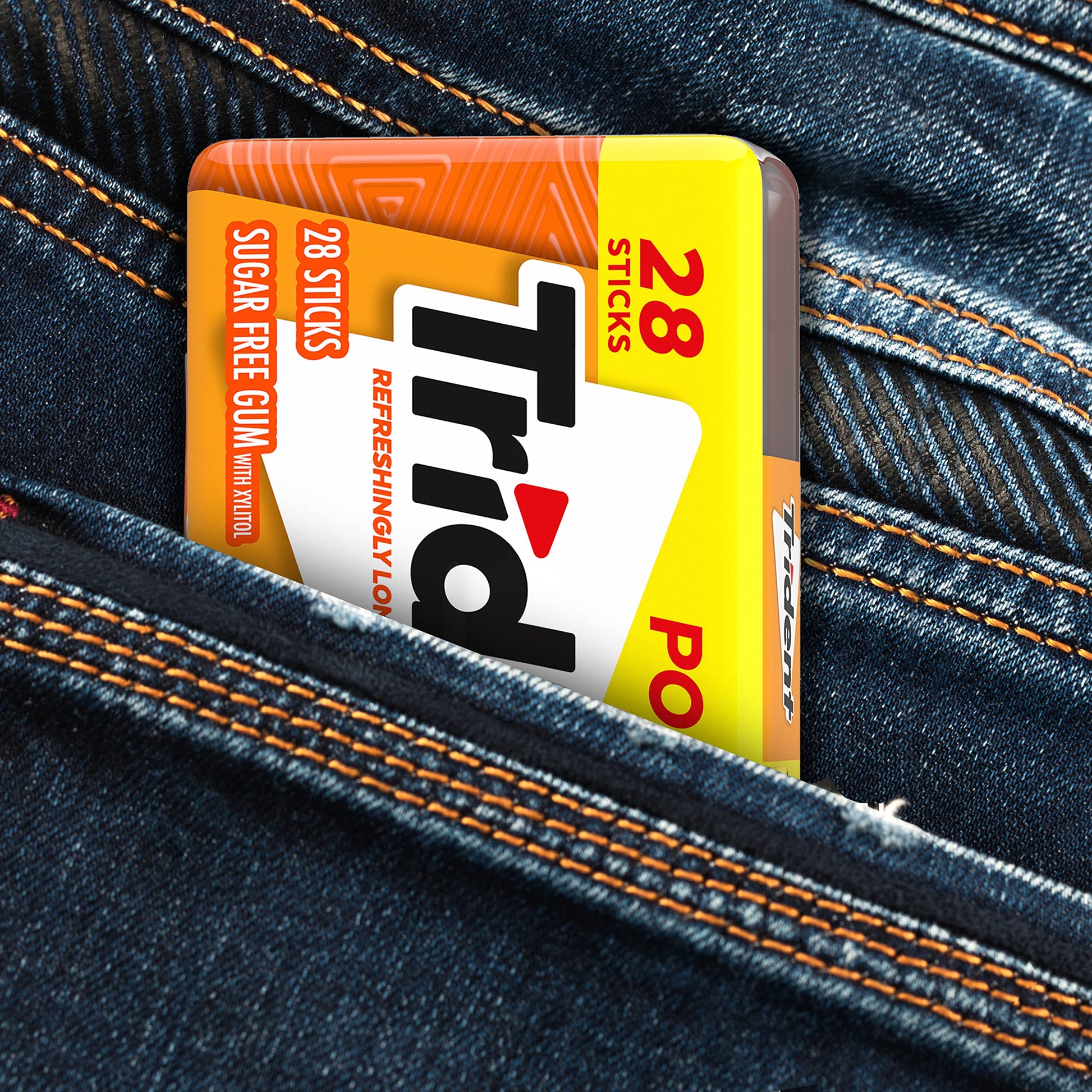Q: Is Trident Tropical Twist Sugar Free Gum suitable for on-the-go use?A: Yes, Trident Tropical Twist Sugar Free Gum comes in convenient pocket packs that are designed for easy portability, making it perfect for keeping in your purse, desk, car, or locker for freshening your breath anytime, anywhere.