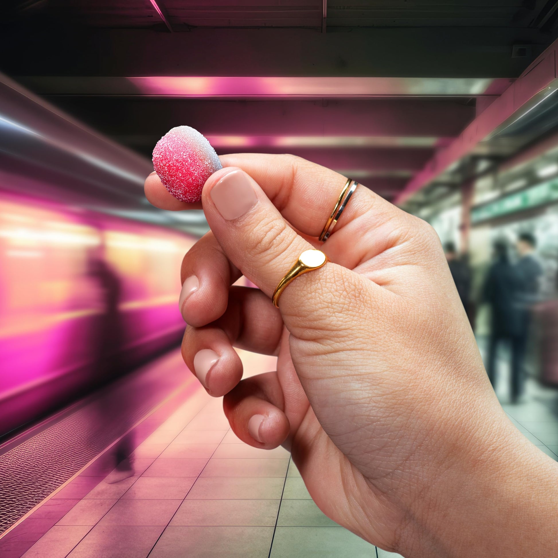 Q: What are Trolli Strawberry Puffs made of?A: Trolli Strawberry Puffs are made from high-quality gummy ingredients that deliver a soft and chewy texture, complemented by the deliciously fruity flavor of fresh strawberries.
