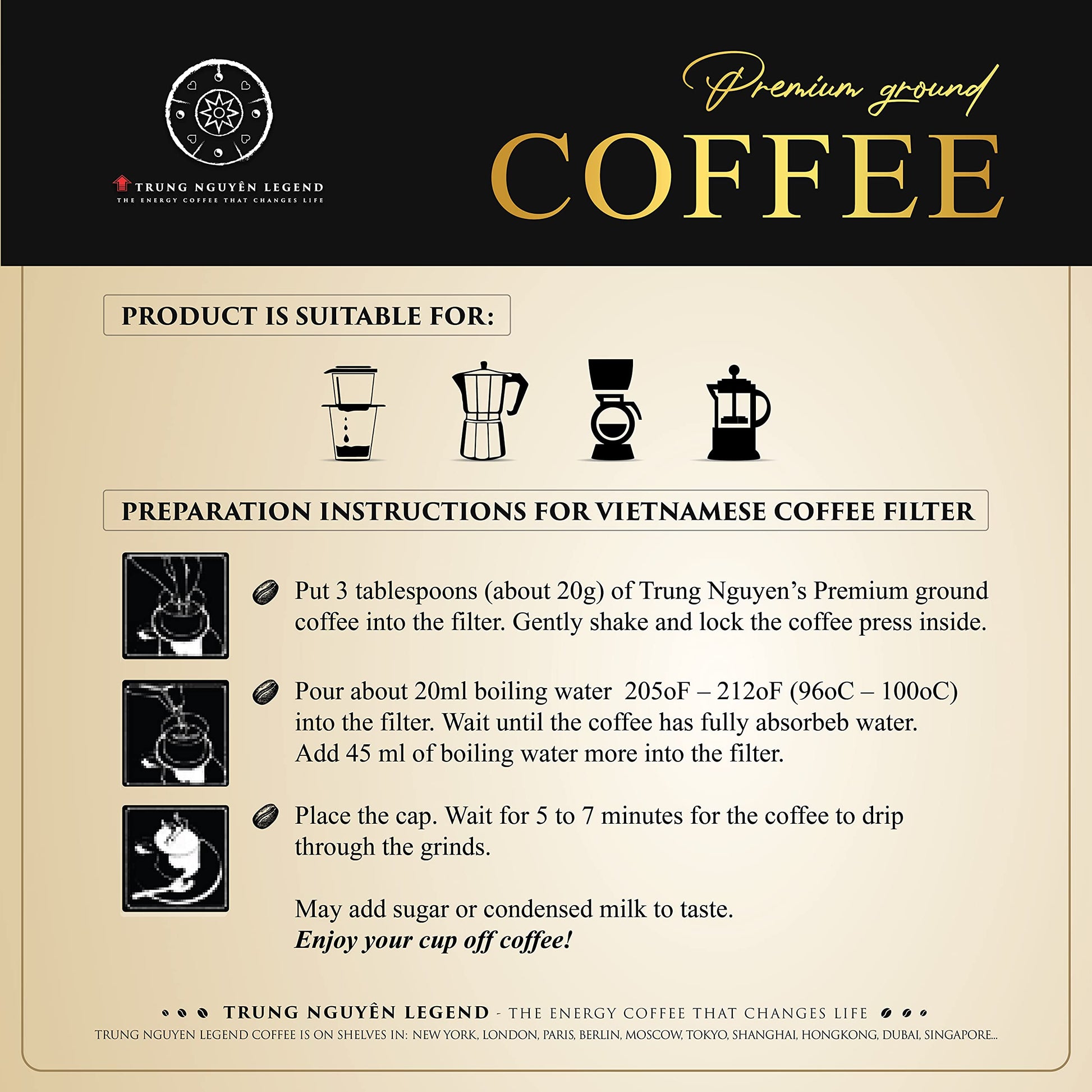 Trung Nguyen Legend Gourmet Blend Premium Roasted Ground Coffee - Chocolate And Fruity Flavor By Robusta & Arabica Coffee Beans