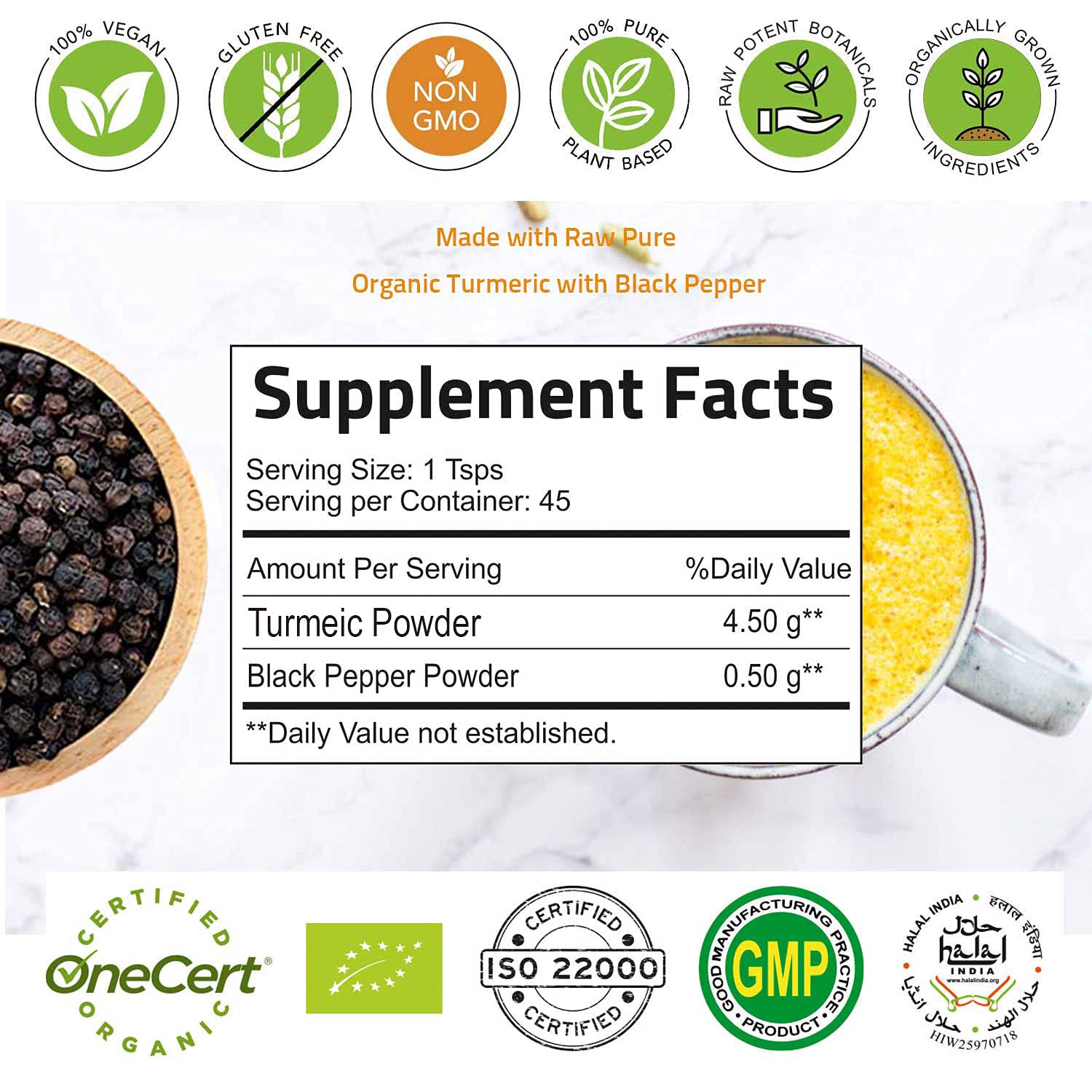 - Q: What is the size of the Turmeric Curcumin package? A: The Turmeric Curcumin with Black Pepper is available in an 8-ounce (227g) package, making it easy to store and use for multiple servings.