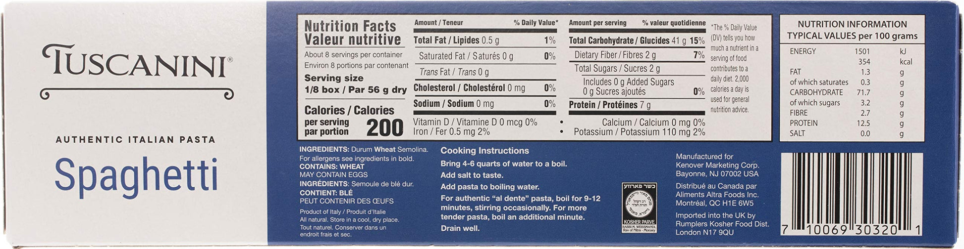 - Q: How should I store Tuscanini Spaghetti? A: For best results, store Tuscanini Spaghetti in a cool, dry place, and ensure the package is sealed tightly to maintain freshness.