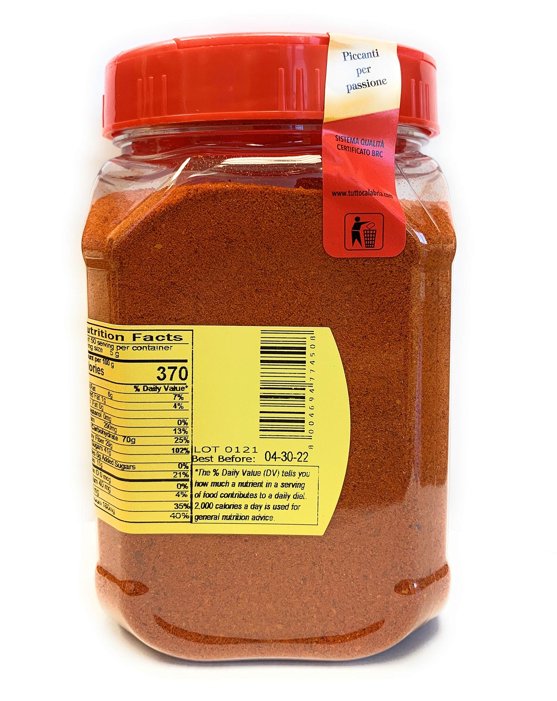 Tutto Calabria Calabrian Hot Chili Powder (350 g (12.3 oz). With a lovely balance of sweet, smoky, and a touch of heat, this ground Italian chile pepper is the magic dash for a red sauce, fish, or grilled vegetables. The Calabrian Chili peppers are a variety of peppers that originates from the Calabrian region of Italy. The chili is small but oozes flavor, with a combination and variety of tastes that is simply unique. Although predominantly spicy, there is also a salty, smoky and even fruity taste to this delicious peppers. A slow aromatic heat, this popular 100% Calabrian chili powder is great for cooking, pasta, or pizza. The subtle heat and aromatic flavors of this chili will beg you to permanently switch to this product.