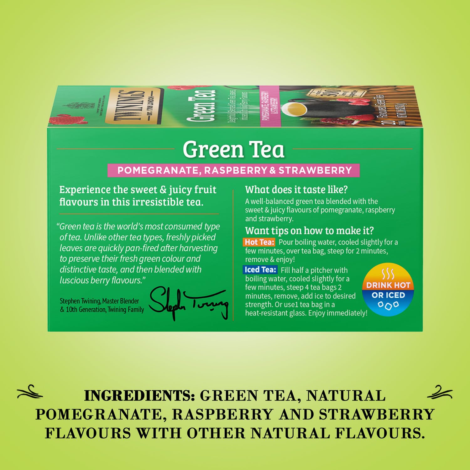 Twinings Green Tea With Pomegranate, Raspberry, And Strawberry - Caffeinated Green Tea Bags Individually Wrapped, 20 Count (Pack