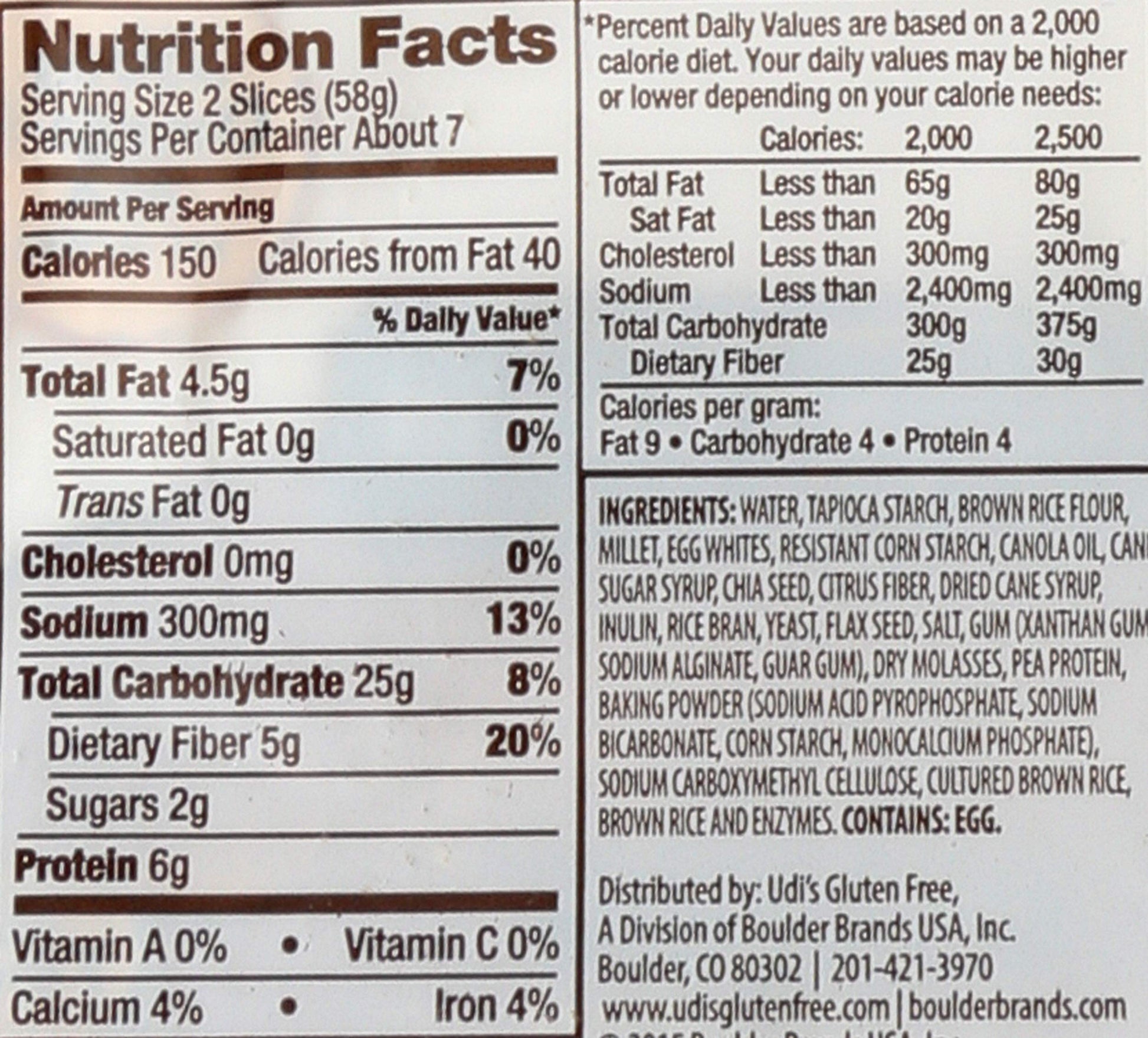 Q: Is Udi's Gluten-Free Millet-Chia Bread suitable for people with celiac disease?A: Yes, Udi's Gluten-Free Millet-Chia Bread is made with gluten-free ingredients, making it suitable for individuals with celiac disease or gluten sensitivities.