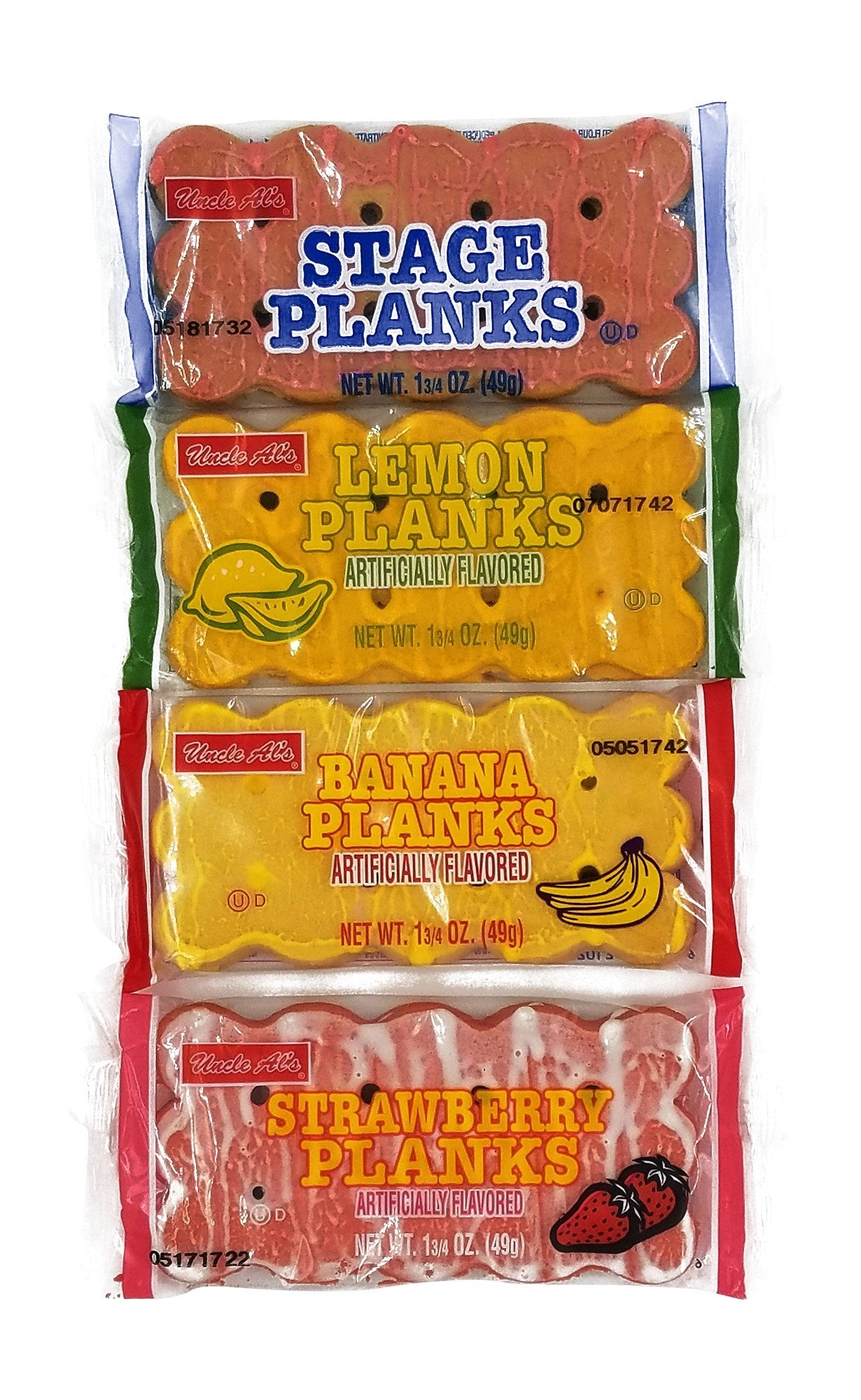 Q: What flavors are included in the Uncle Als Stage Planks Bulk Variety Pack?A: The Uncle Als Stage Planks Bulk Variety Pack includes four delicious flavors: Original, Banana, Lemon, and Strawberry, ensuring a delightful treat for every palate.