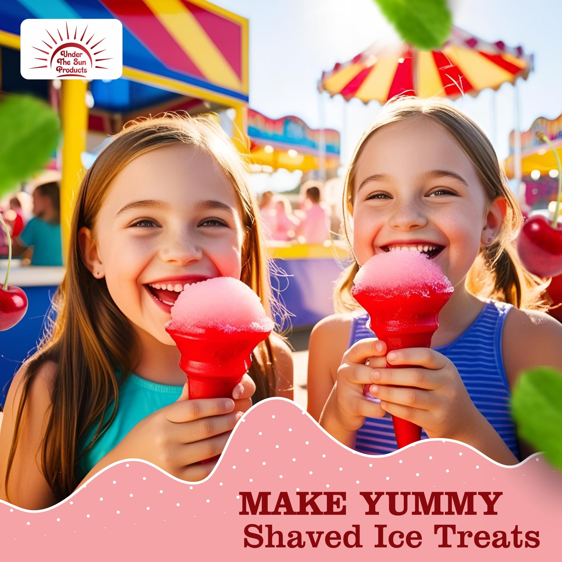 Q: What is the flavor profile of the Under the Sun Cherry Snow Cone Syrup?A: The Under the Sun Cherry Snow Cone Syrup offers a vibrant blend of sweet and tangy cherry flavor, making it an ideal choice for enhancing snow cones, shaved ice, and other frozen treats.