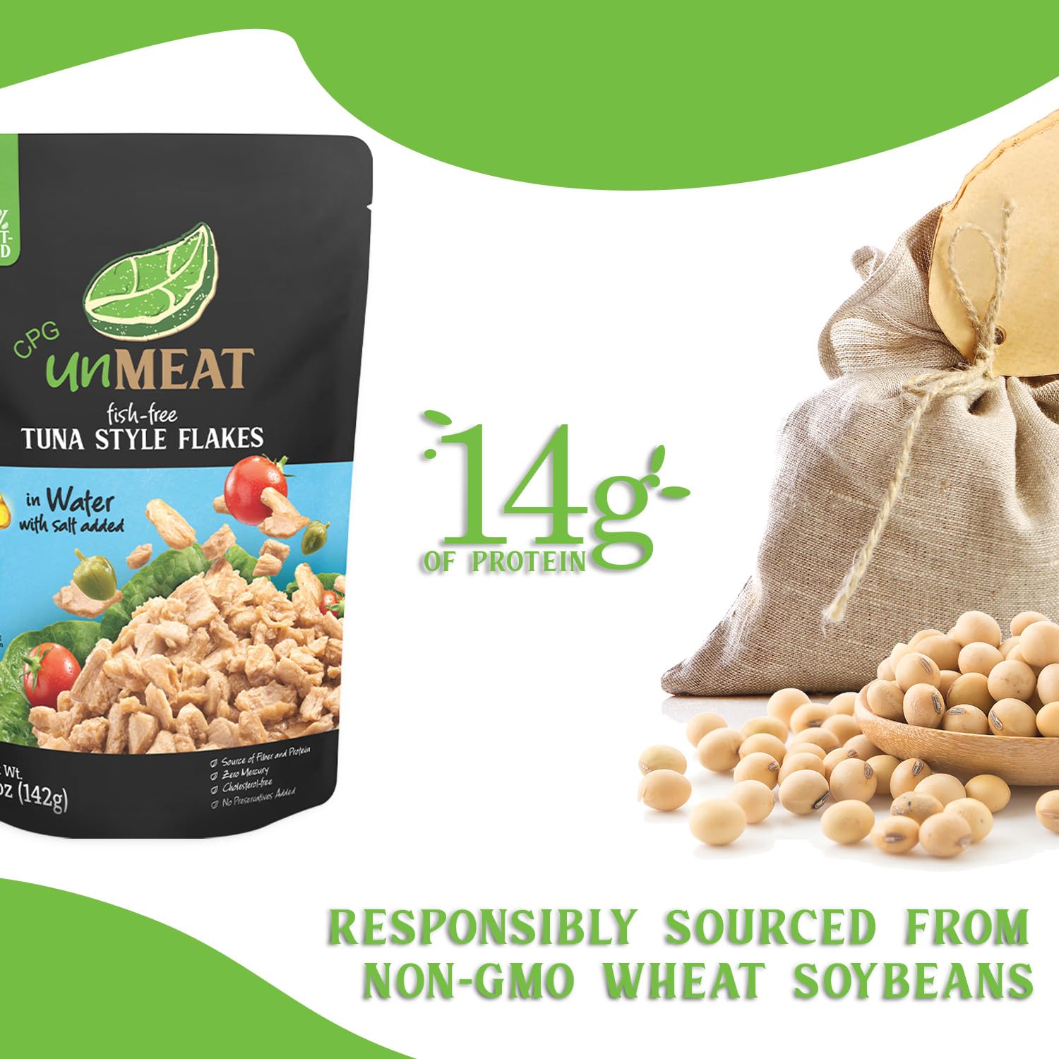 • Q: What are the main ingredients in unMEAT Plant Based Tuna Style Flakes? A: unMEAT Plant Based Tuna Style Flakes are crafted from a carefully selected blend of sustainable, non-GMO plant-based ingredients. This includes high-quality plant proteins, ensuring that our product is not only delicious but also nutritious, providing essential nutrients without any cholesterol or artificial additives.