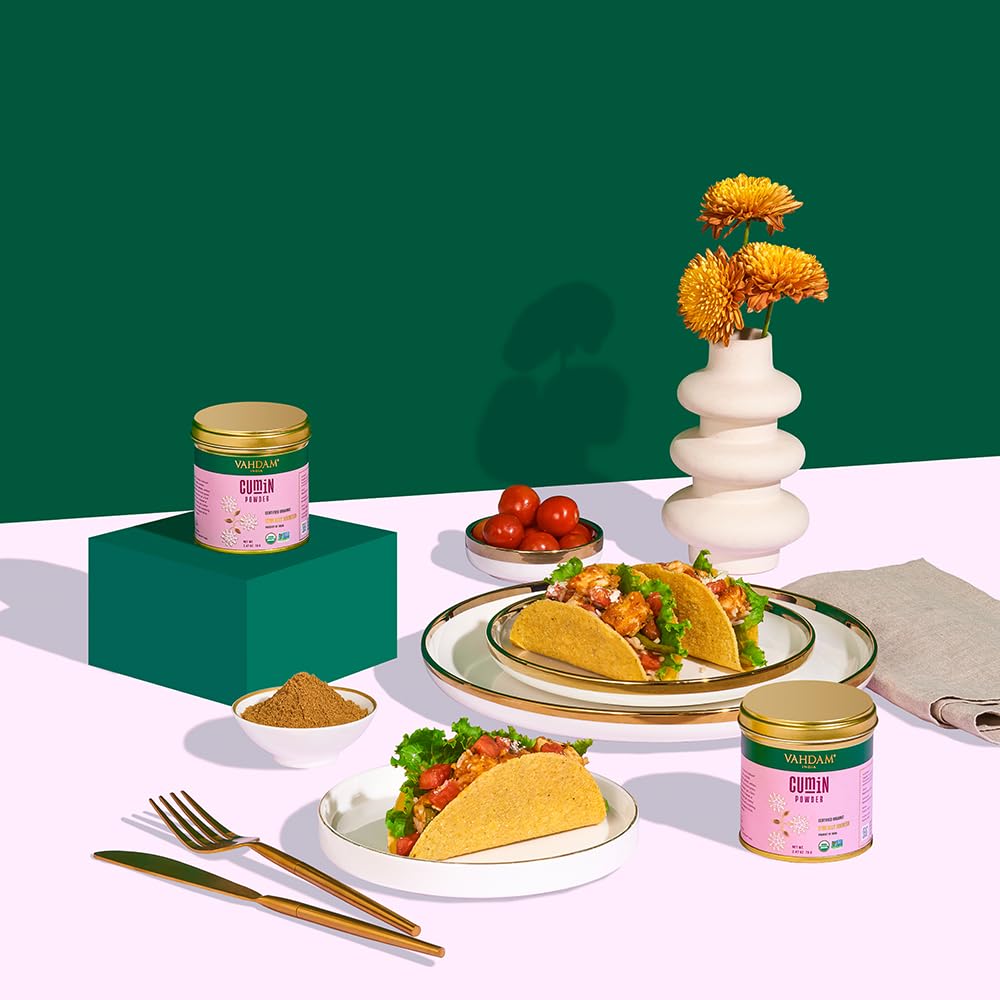 Q: Is VAHDAM Cumin Powder organic and free from additives?A: Yes, VAHDAM Cumin Powder is sourced directly from Rajasthan, India, and is packed in premium conditions to ensure it is free from chemicals, preservatives, and artificial coloring, offering you pure and fresh spice.