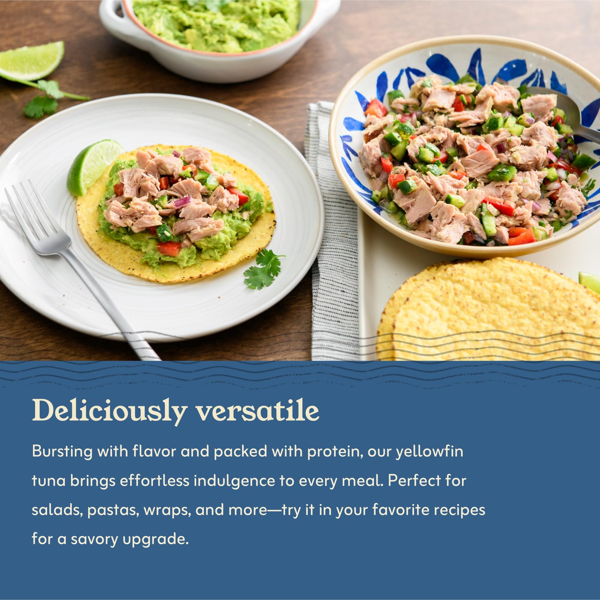 Clean, Light Flavor: Light And Versatile, Van Camps Seafood Solid Light Yellowfin Tuna In Water Delivers 29 Grams Of Protein. Its An Ideal Choice For Fresh Salads, Low-Fat Wraps, And Protein-Packed Snacks.Deliciously Versatile: Bursting With Rich Flavor And Packed With Protein, Our Yellowfin Tuna Brings Effortless Indulgence To Every Meal. Perfect For Salads, Pastas, Wraps, And More-Try It In Your Favorite Recipes For A Savory Upgrade.Nutrient-Rich Tuna: Packed With Protein And Featuring Heart-Healthy Omega-3S, Our Yellowfin Tuna Is Perfect For Keto, Paleo, And Mediterranean Diets. Made With Simple Ingredients, No Preservatives, And Gluten-Free For A Clean, Satisfying Taste.Wild Caught Tuna: Our Yellowfin Tuna Is Responsibly Sourced And Wild Caught, Bringing You Quality Seafood While Prioritizing Ocean Health. Were Committed To Sustainable Practices To Protect Our Seas For Generations To Come.Bulk 48 Pack: Save More With Our Shelf-Stable Yellowfin Tuna In Bulk. Ideal For Easy Meals Or A Quick, Flavorful Snack When You Need It Most